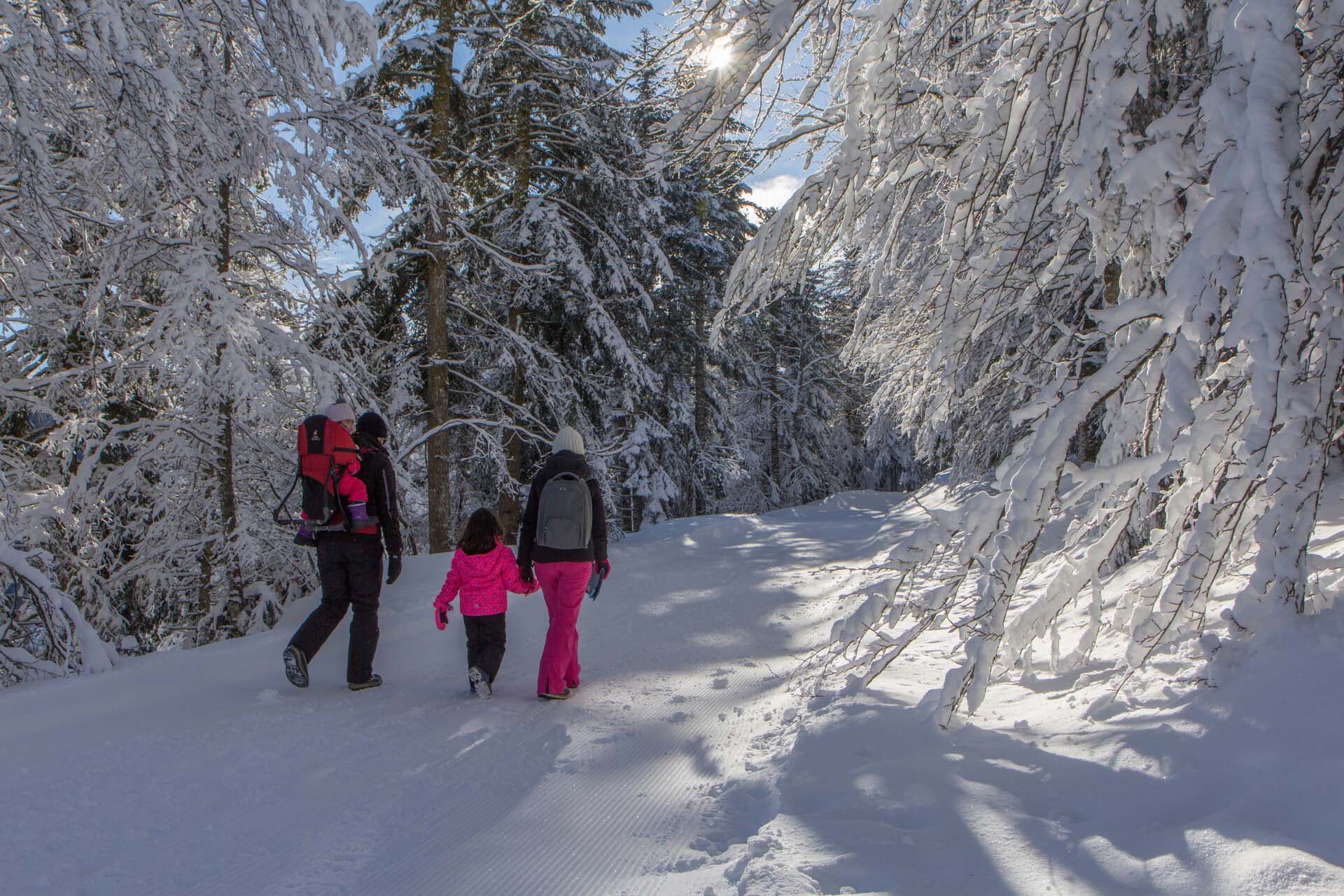 Avec les enfants, choisissez une balade à pied ou en raquettes, entre forêts et plateaux d’altitude pour vous plonger en pleine nature et profitez des vues incroyables !