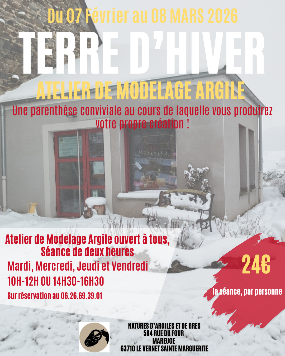 -Séance de 2 heures : 24€ (Terre, cuisson et patines comprises)