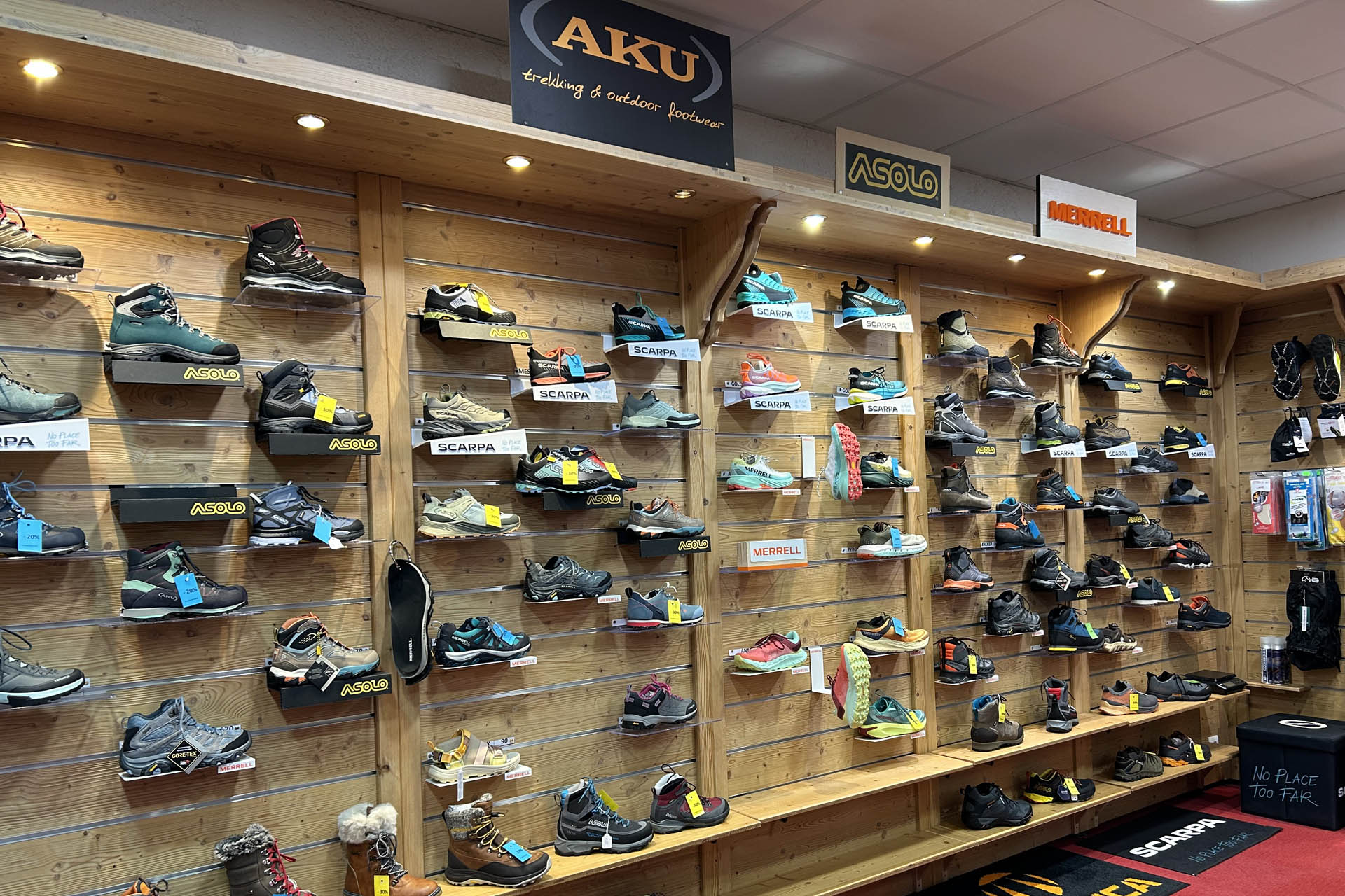 Un service de location : chaussures de randonnée, bâtons, sacs à dos, matériel de bivouac (tente, réchaud, popote), matériel d’alpinisme, kit de via ferrata (baudrier,(…)