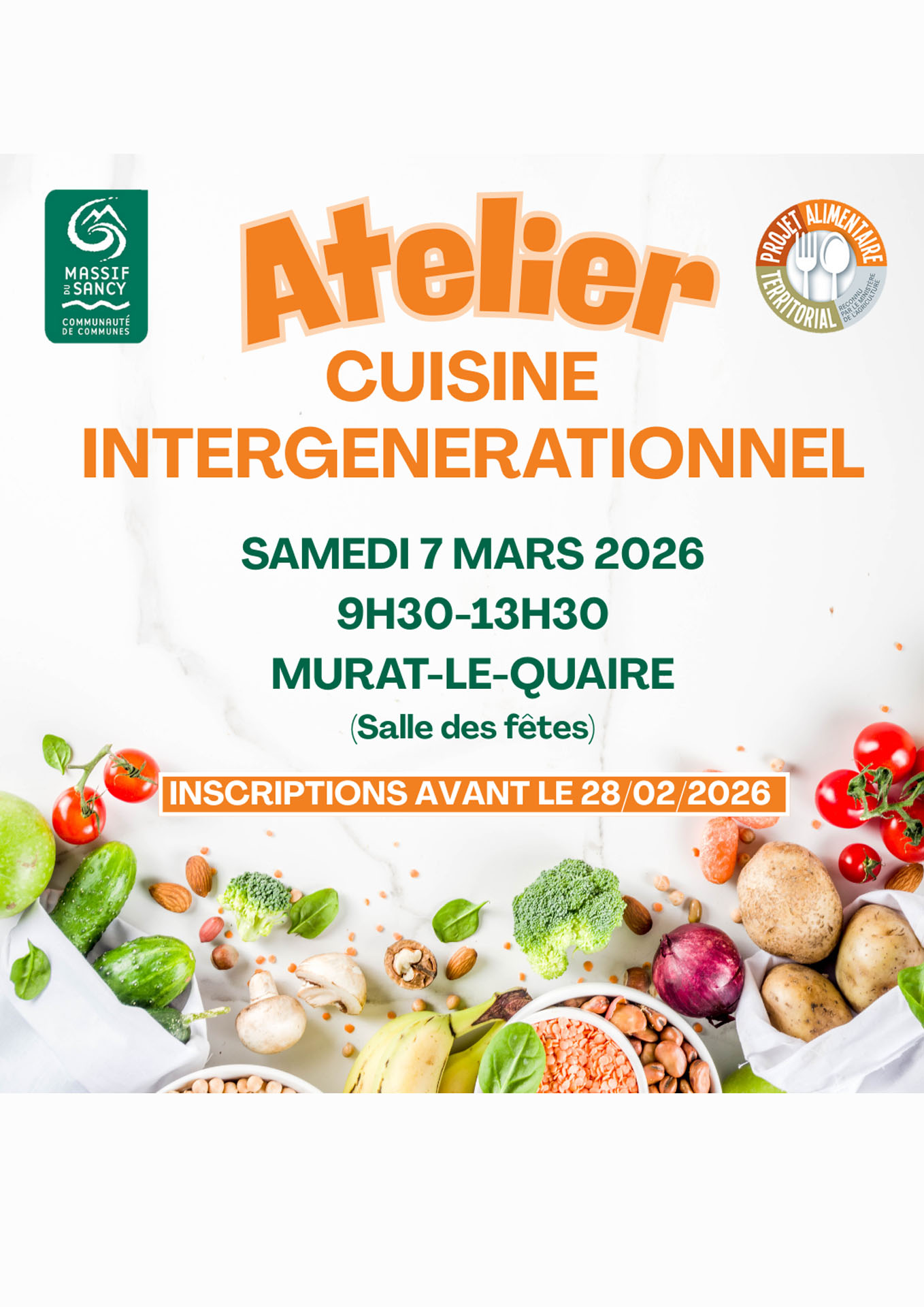 Dans le cadre du Projet Alimentaire Territorial du Massif du Sancy, la Communauté de Communes du Massif du Sancy propose un atelier cuisine intergénérationnel.