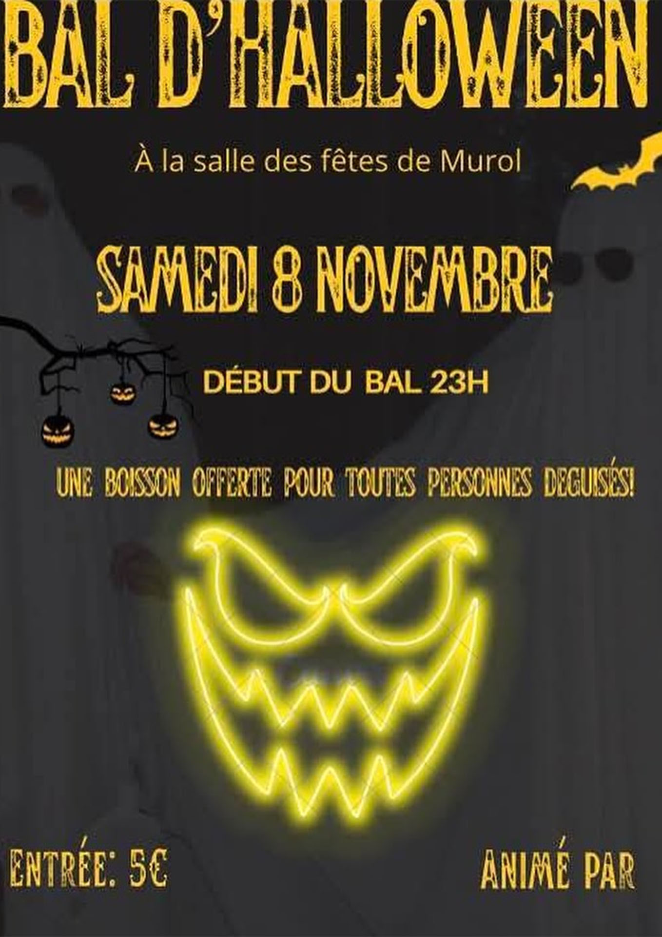 Nous sommes heureux de vous retrouver le samedi 08 novembre à la salle des fêtes de Murol pour le fameux bal d’Halloween !