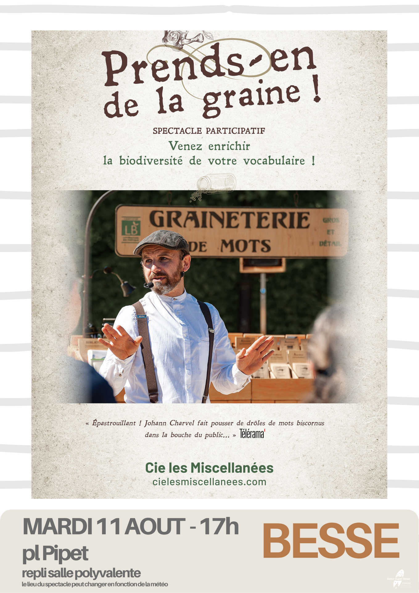 BESS’ TIVAL saison culturelle version été – Spectacle : Prends-en de la graine