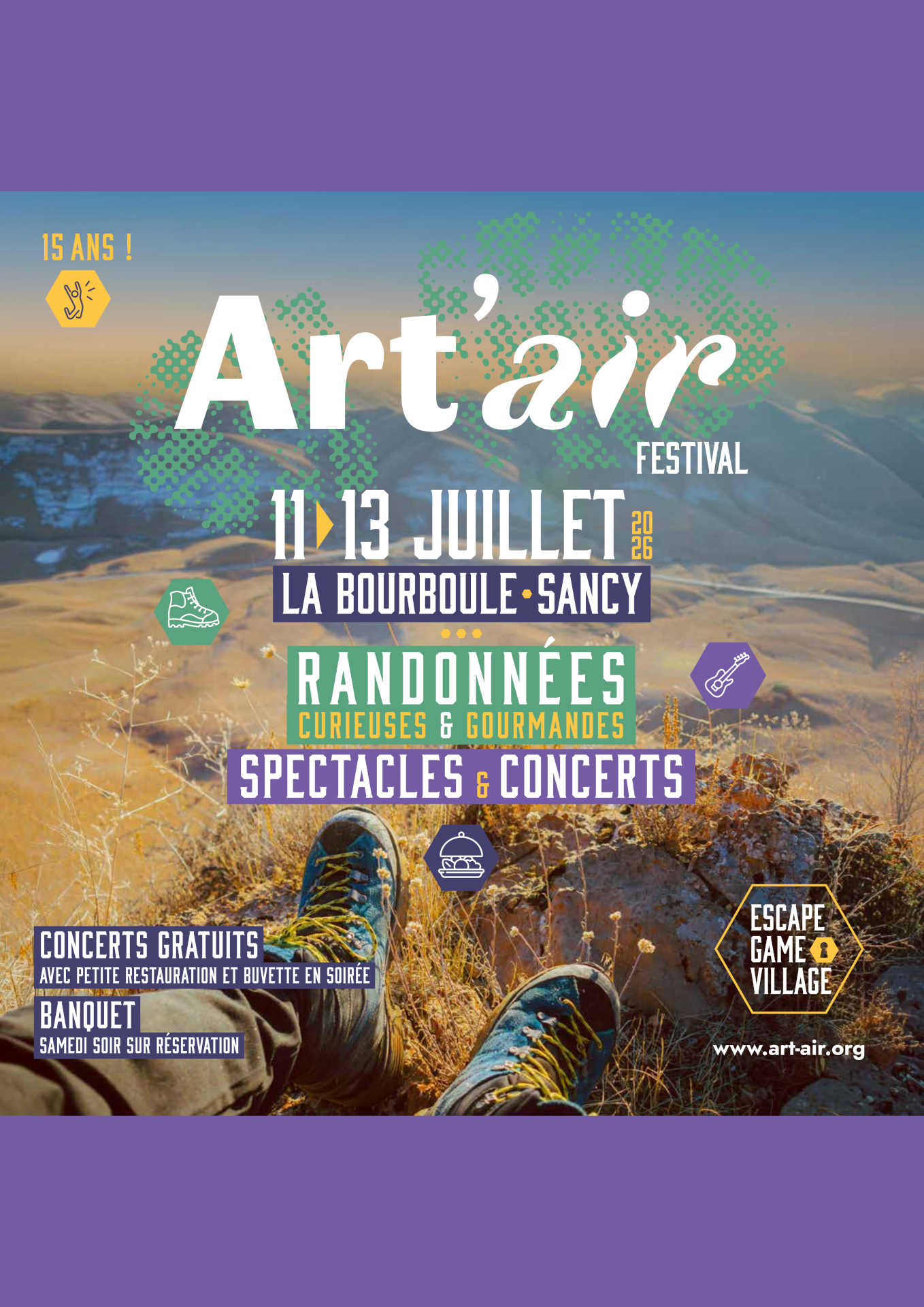Le Festival ART’AIR est un rendez-vous estival incontournable dans le Puy-de-Dôme. Il réunit amateurs de randonnée, de patrimoine et de nature autour de balades et d’animations culturelles pour découvrir les richesses du territoire.