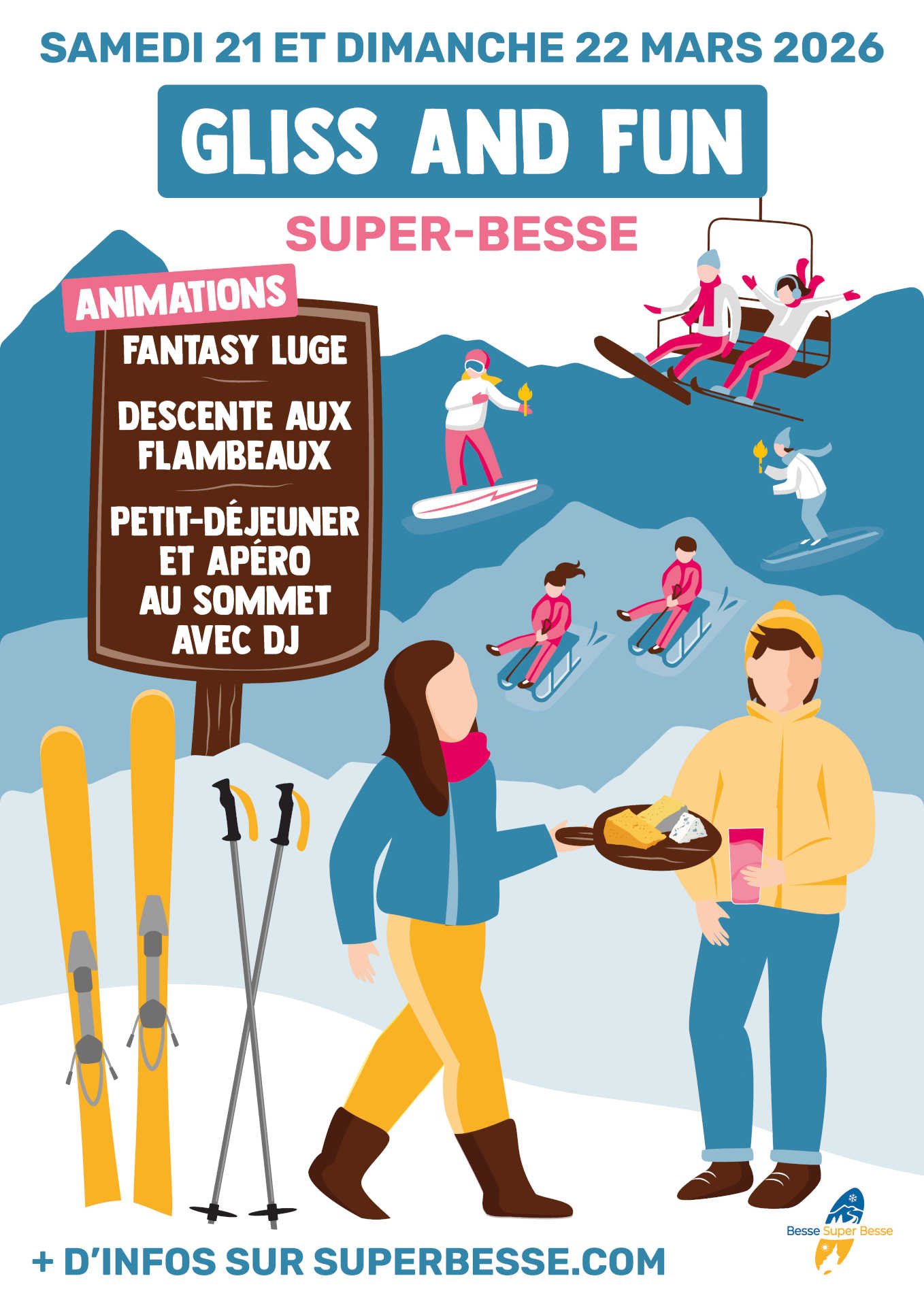 – de 16 h à 19 h 30 : apéro au sommet avec DJ et coucher de soleil (sous réserve des conditions météorologiques).