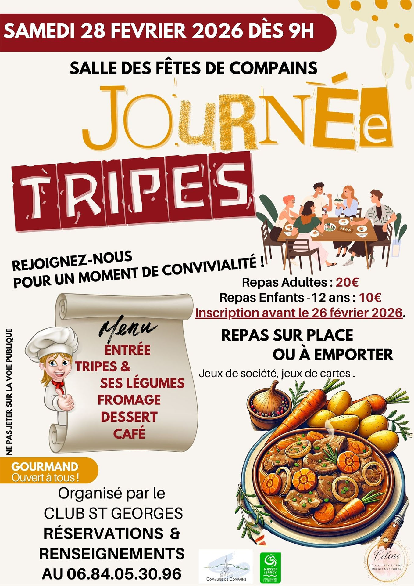 La traditionnelle journée tripe fait son retour. Une journée placée sous le signe de la convivialité et du partage, organisée par le Club St Georges .