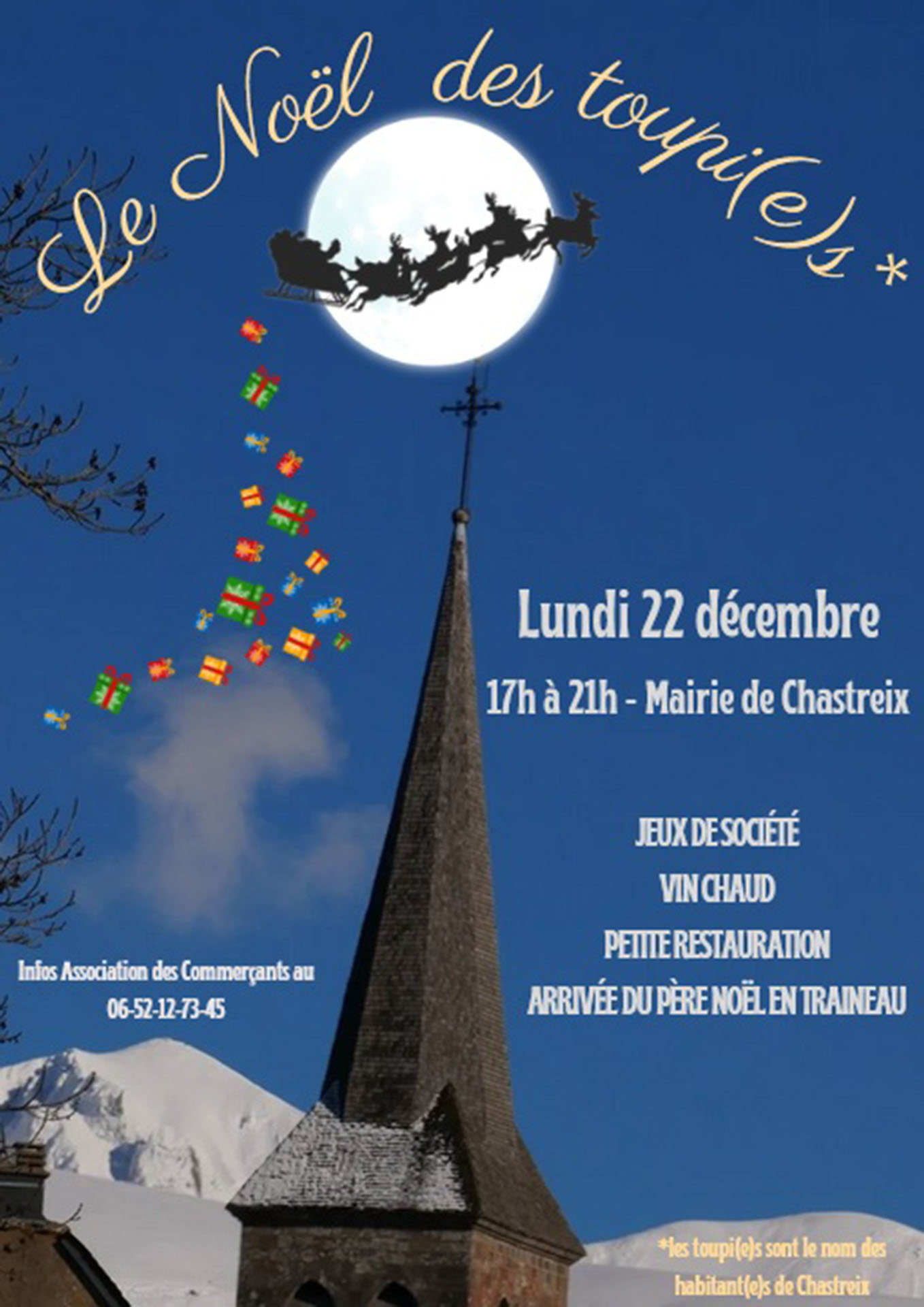 Jeux de société, vin chaud, petite restauration et arrivée du Père Noël en traineau.
