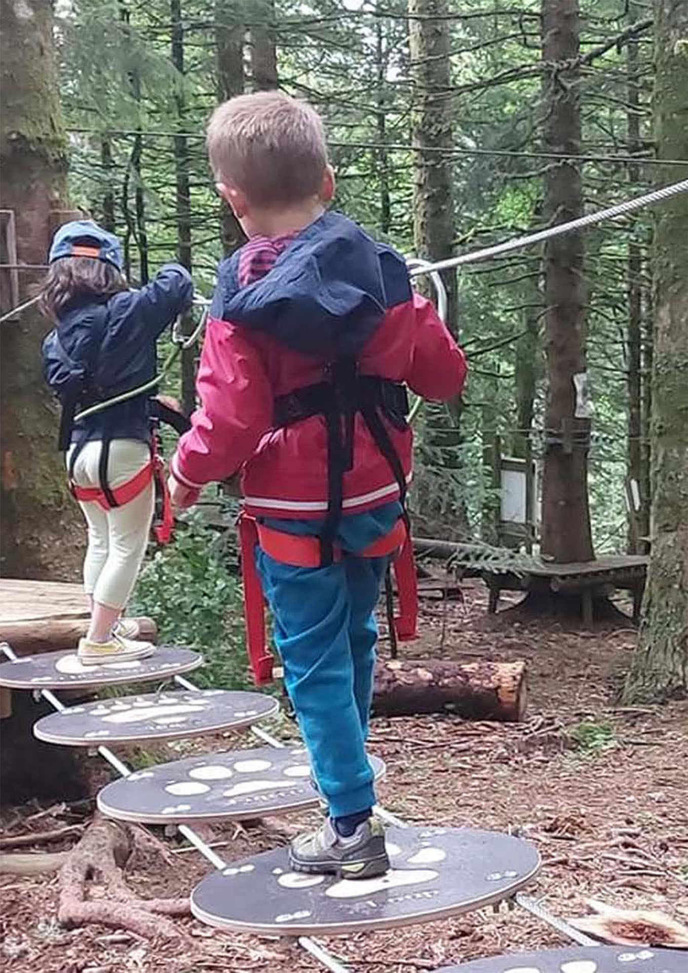 3 parcours Minots dans les arbres spécialement conçus et imaginés pour les enfants, avec ponts de singe, tyrolienne à bouée, tunnels, filets, passerelles alphabétiques, luge … comprenant 30 jeux au total. Sous la surveillance et l’accompagnement actif au sol d’un parent. Pour les enfants de 3 à 5 ans.