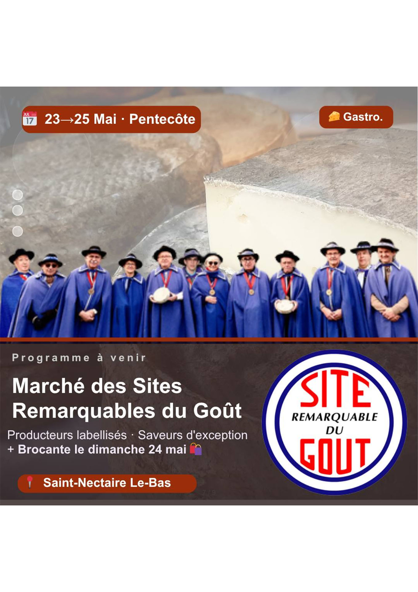 Découvrez notre délicieux fromage AOP Saint-Nectaire ainsi que d’autres producteurs venus d’autres Sites Remarquables du Goût. La fine fleur de la gastronomie vous attend !