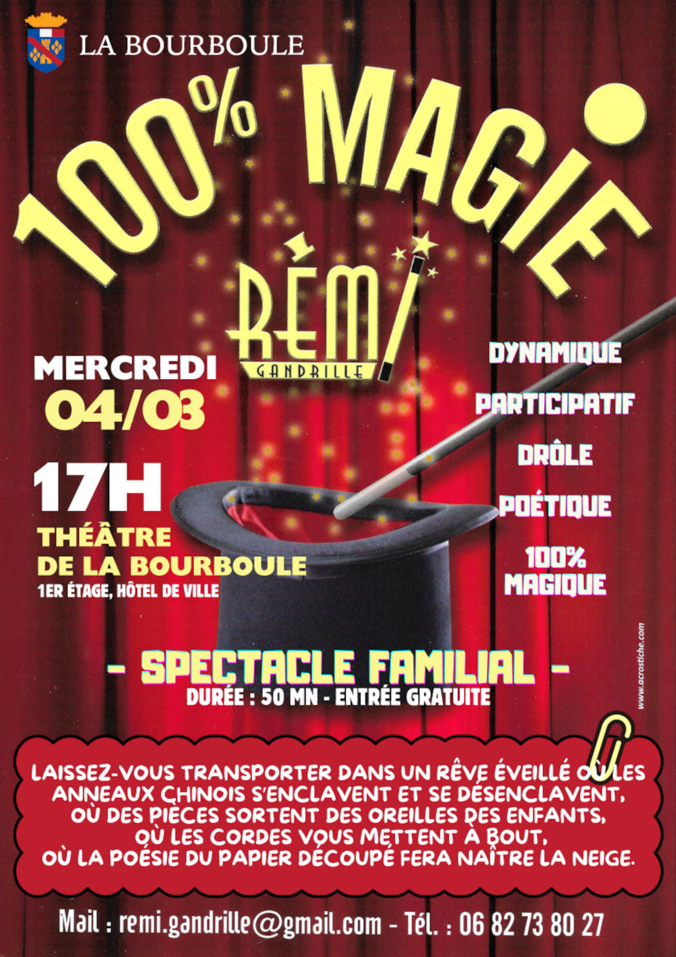 100 % magie, c’est 50 min de rêve, d’humour et de poésie et c’est pour tous les publics.