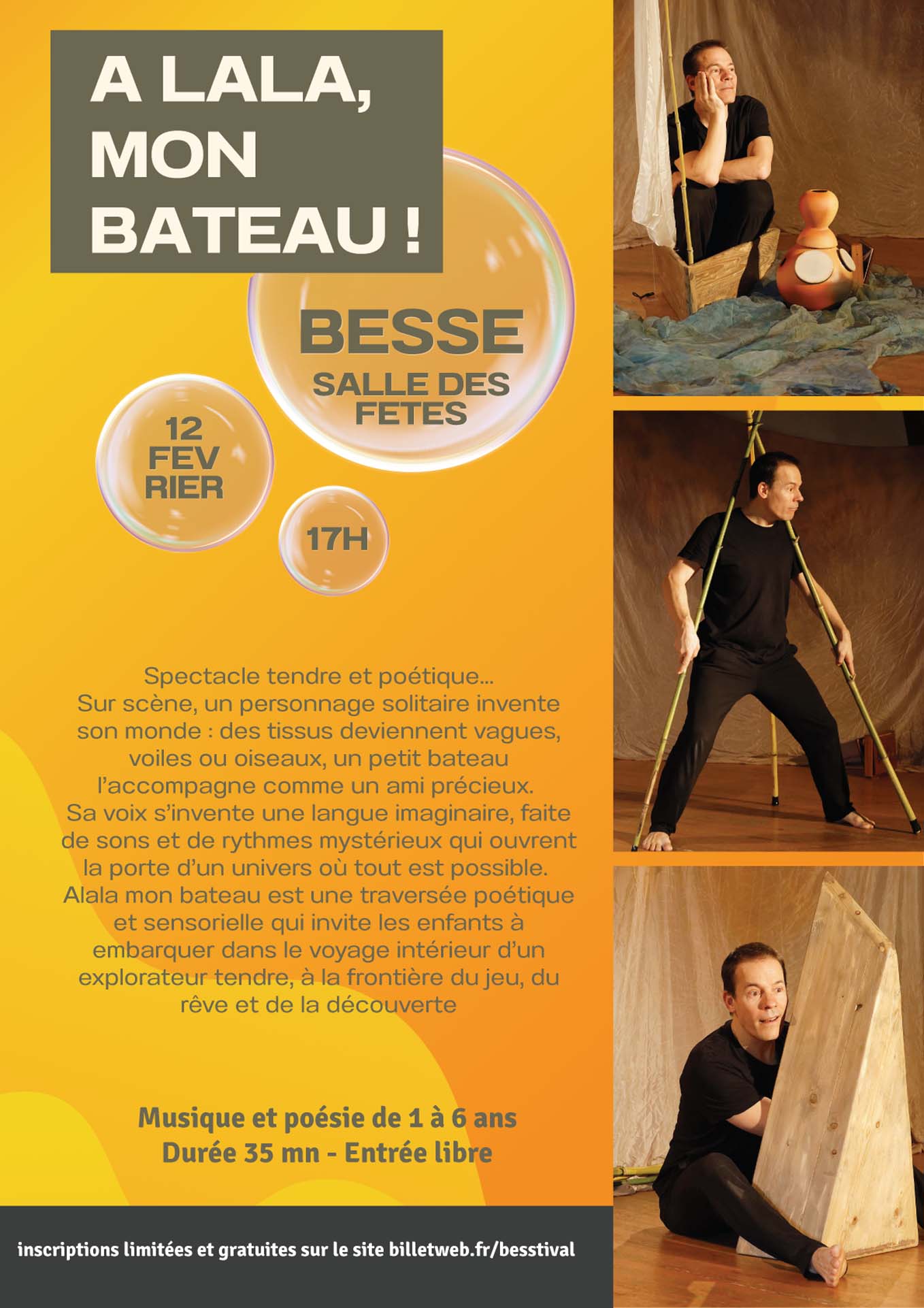 Sur scène, un personnage solitaire invente son monde : des tissus deviennent vagues, voiles ou oiseaux, un petit bateau l’accompagne comme un ami précieux.