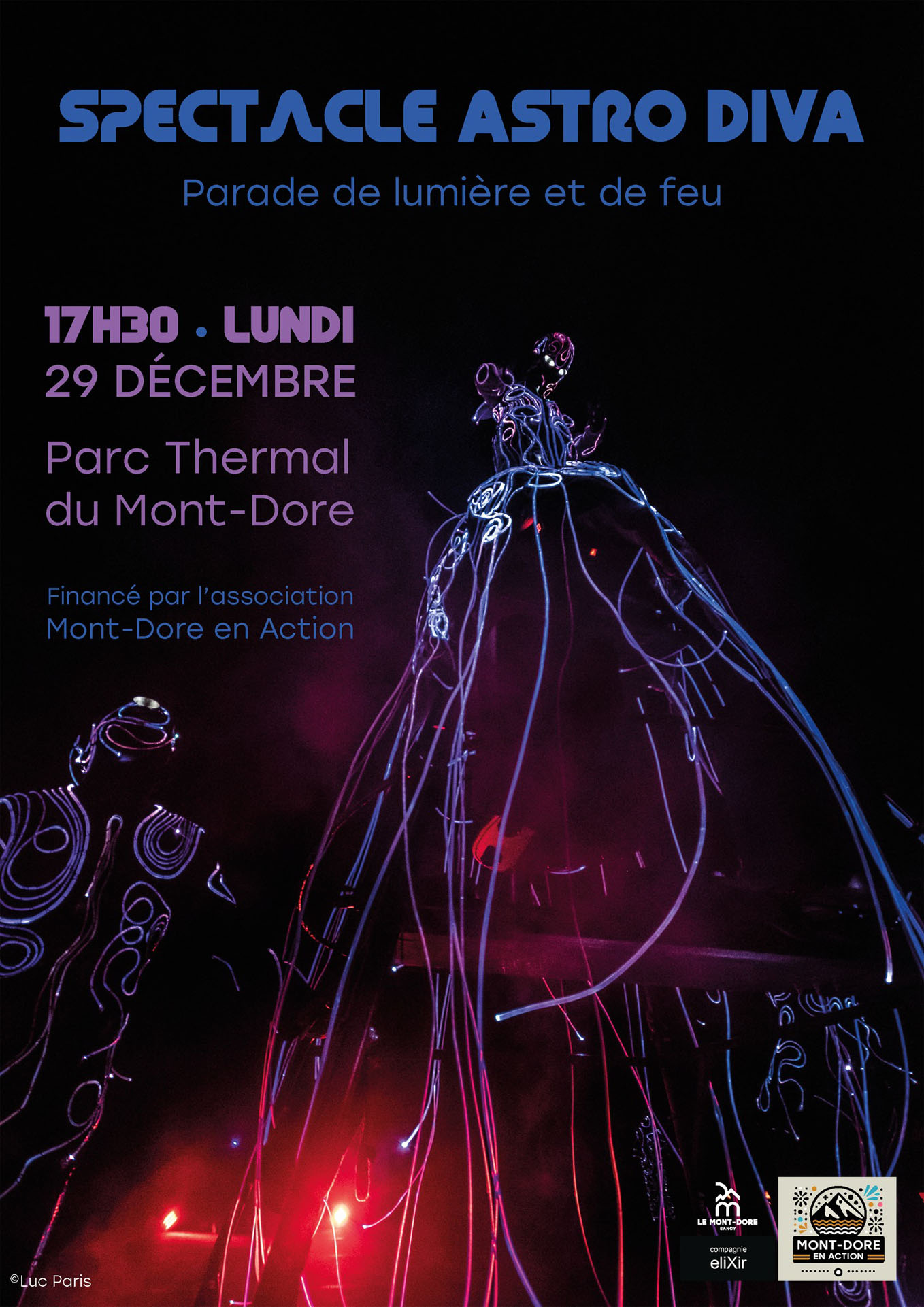 Une diva fabuleuse vous accompagne pour une balade céleste. Entourée des Astros, personnages magiques et créatures de lumière, elle fait jaillir de nouvelles étoiles, de nouveaux mondes. Ces acrobates d’Outre-Terre dansent sur la voie lactée et jonglent avec des comètes dans un ballet d’étoiles.
