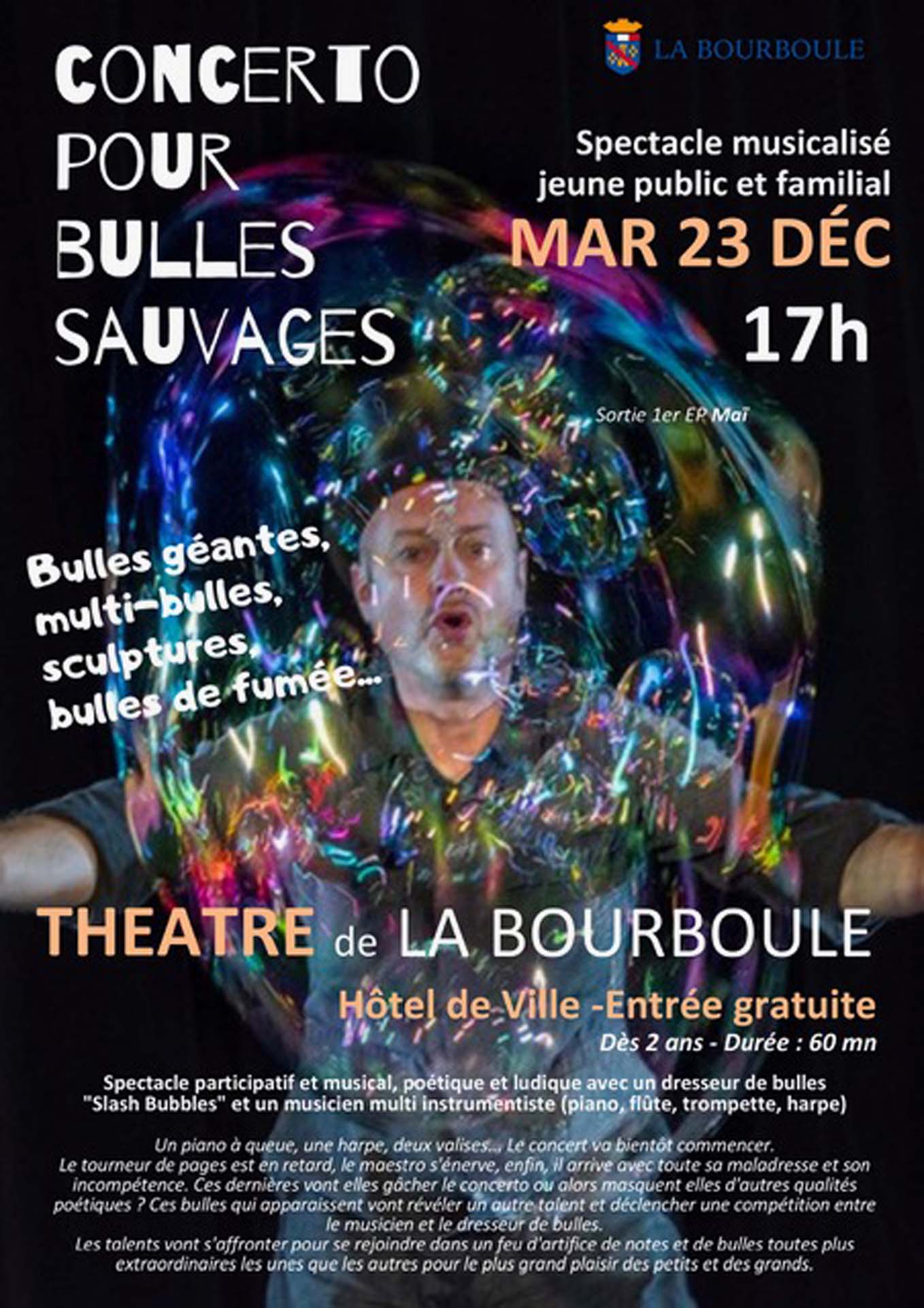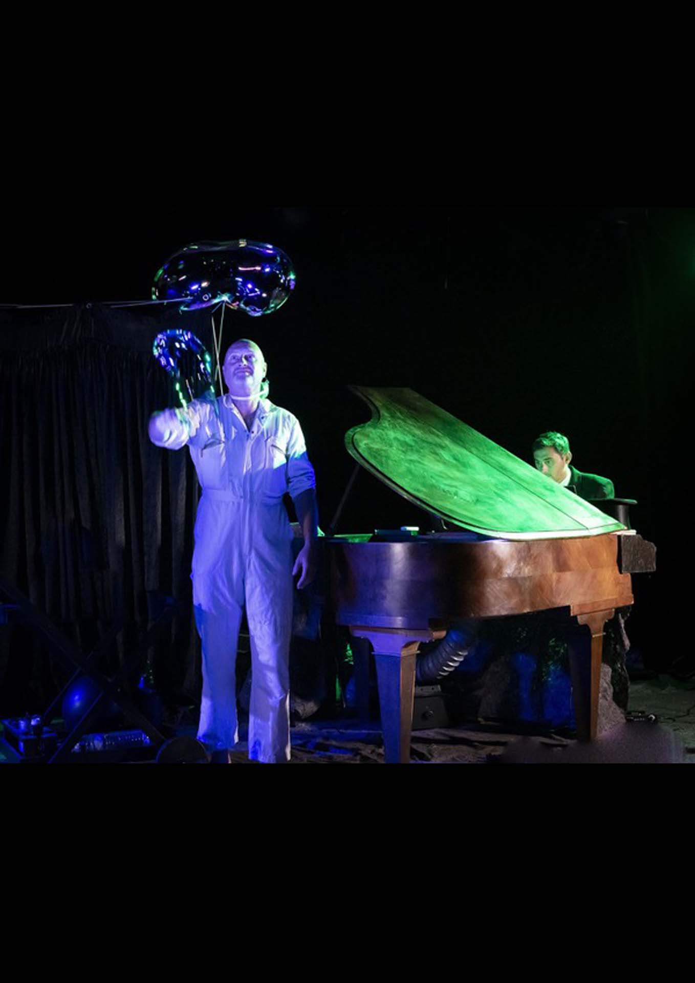 Avec un dresseur de nulles « Slash Bubbles » et un musicien multi instrumentiste (piano, flûte, trompette, harpe).