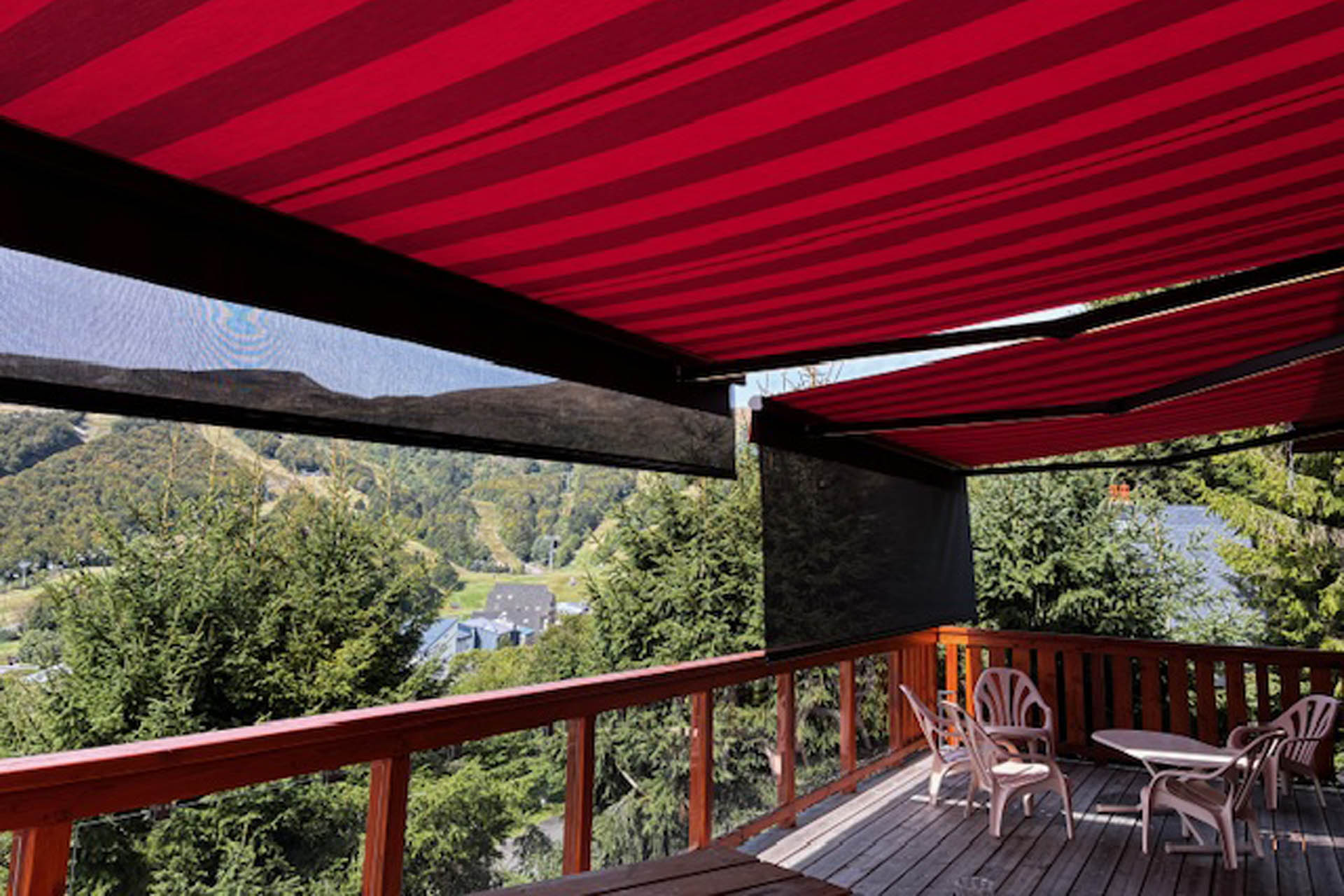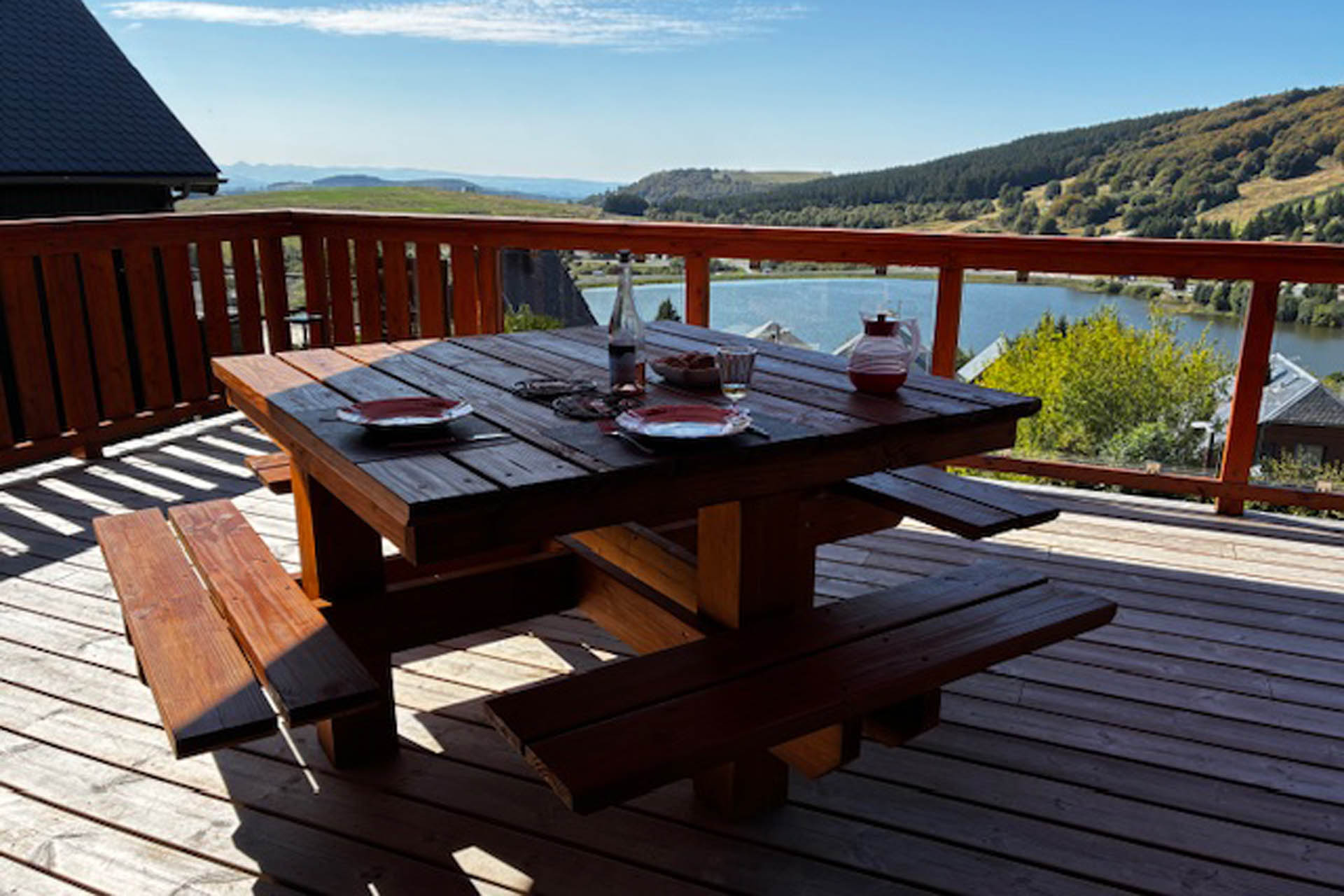 Vue magnifique sur le lac des Hermines, les monts du Cantal, les pistes de ski.