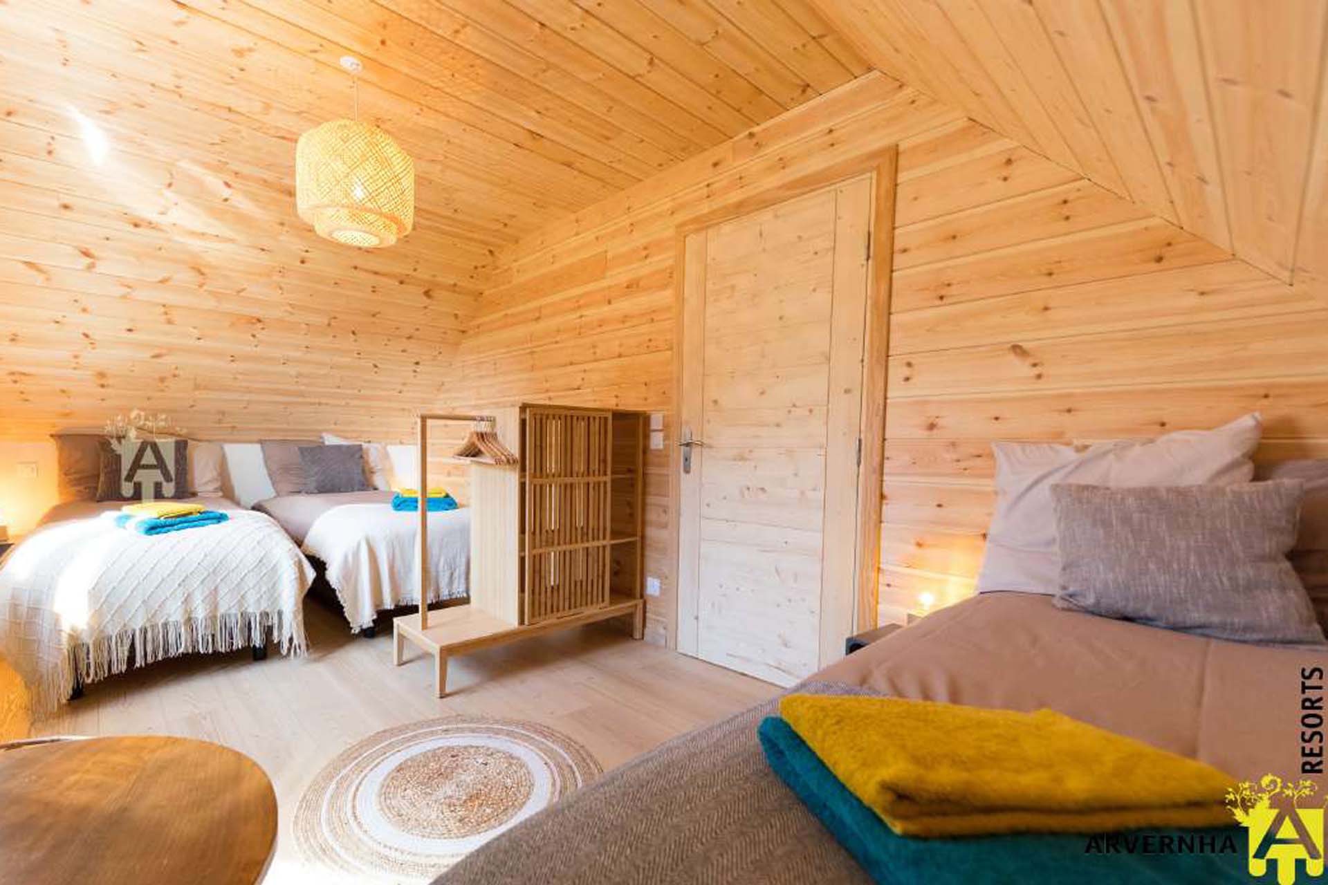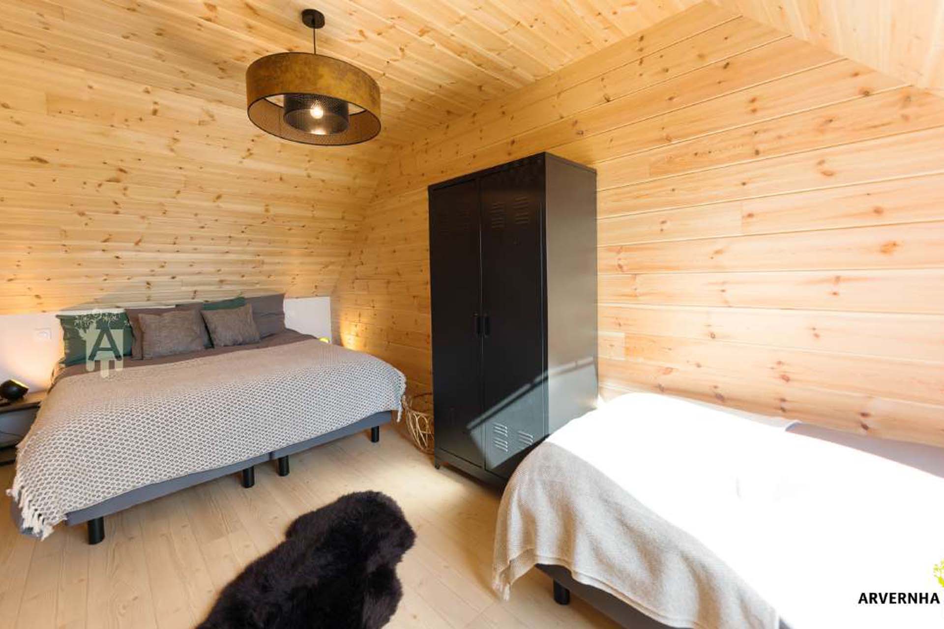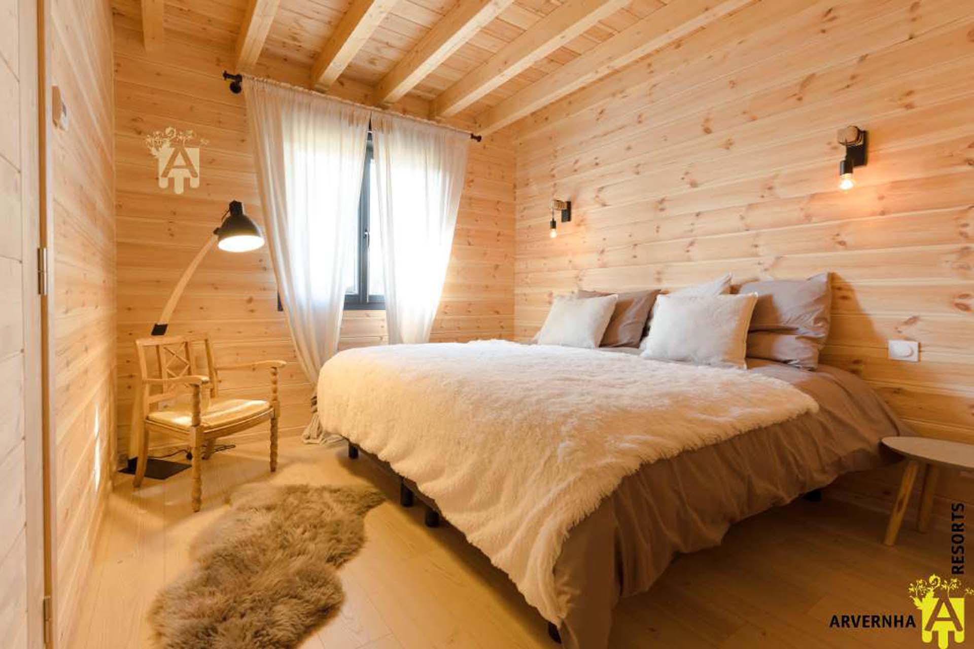 Le chalet peut accueillir jusqu’à 8 personnes et dispose de 3 chambres (deux avec 2 lits doubles et 1 lit simple et une avec 2 lits simples et un lit bébé), d’une salle d’eau avec douche attenante à la suite parentale ainsi que d’une salle de bain avec WC.