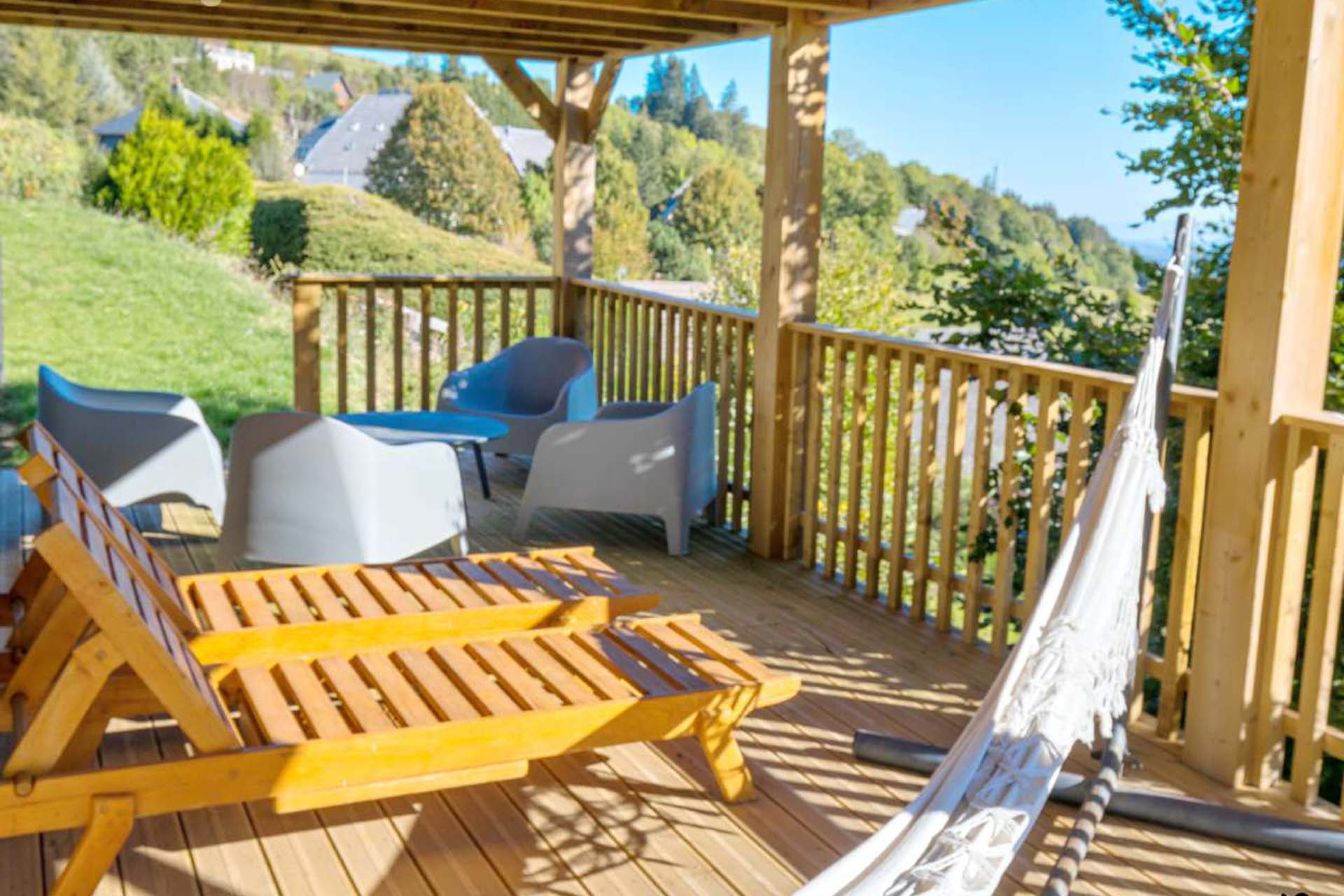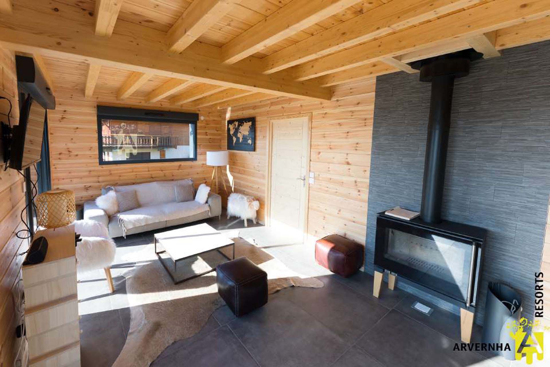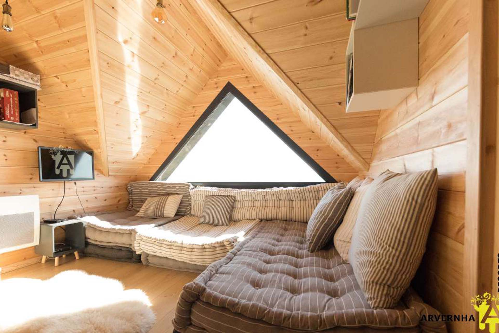 Le chalet peut accueillir jusqu’à 8 personnes et dispose de 3 chambres (deux avec 2 lits doubles et 1 lit simple et une avec 2 lits simples et un lit bébé), d’une salle d’eau avec douche attenante à la suite parentale ainsi que d’une salle de bain avec WC.