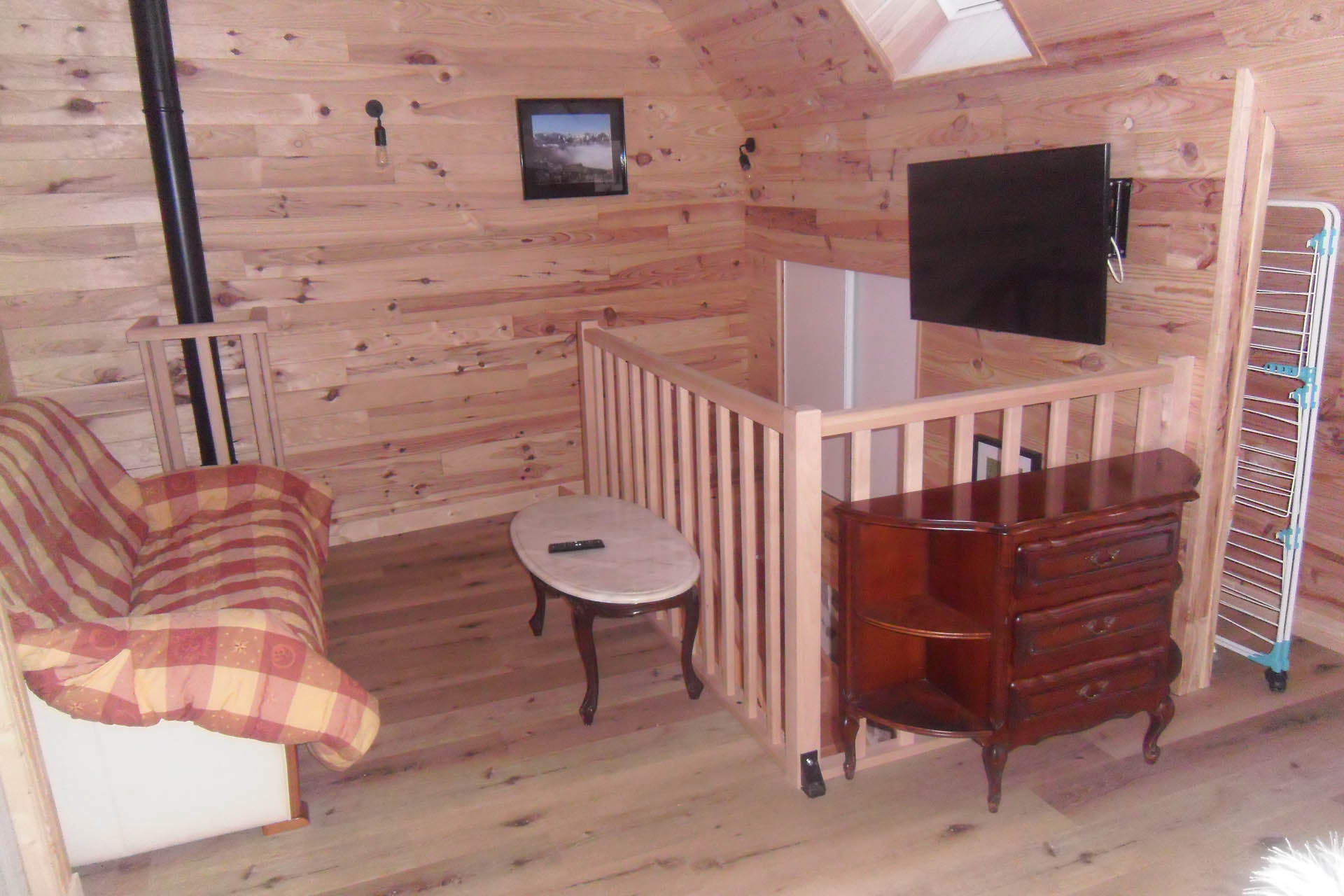 A l’étage, on se croit dans un chalet en bois bien cosy ; les travaux ont été réalisés par des professionnels : donc de la qualité, typique avec une superbe décoration.