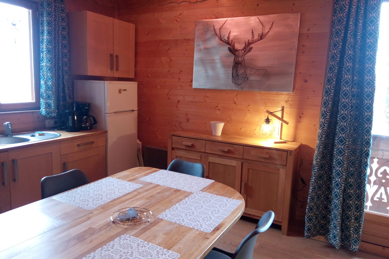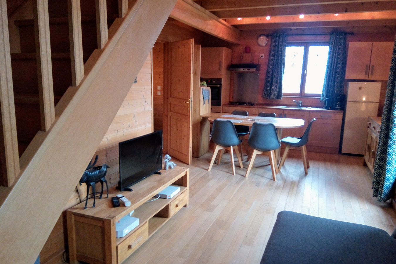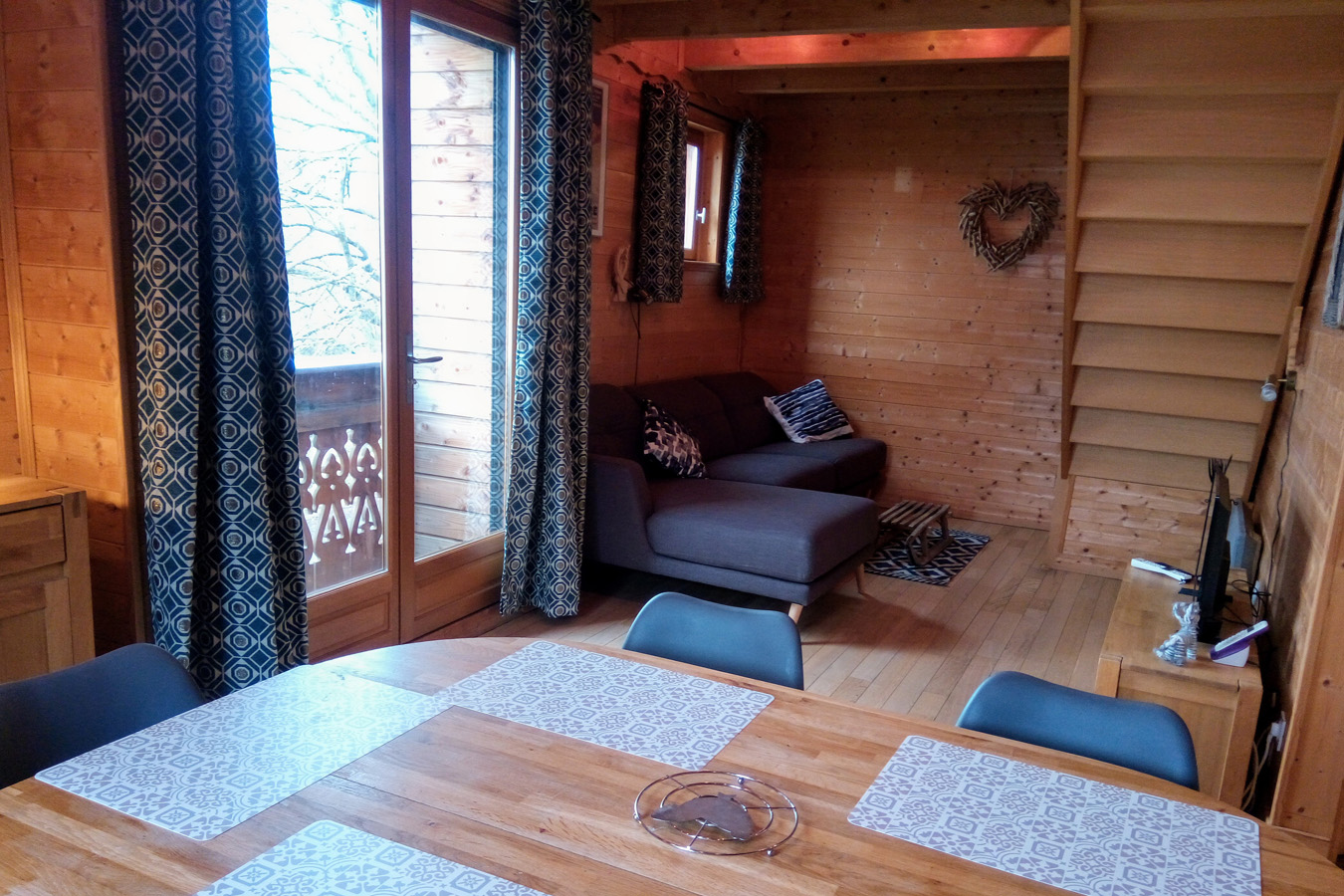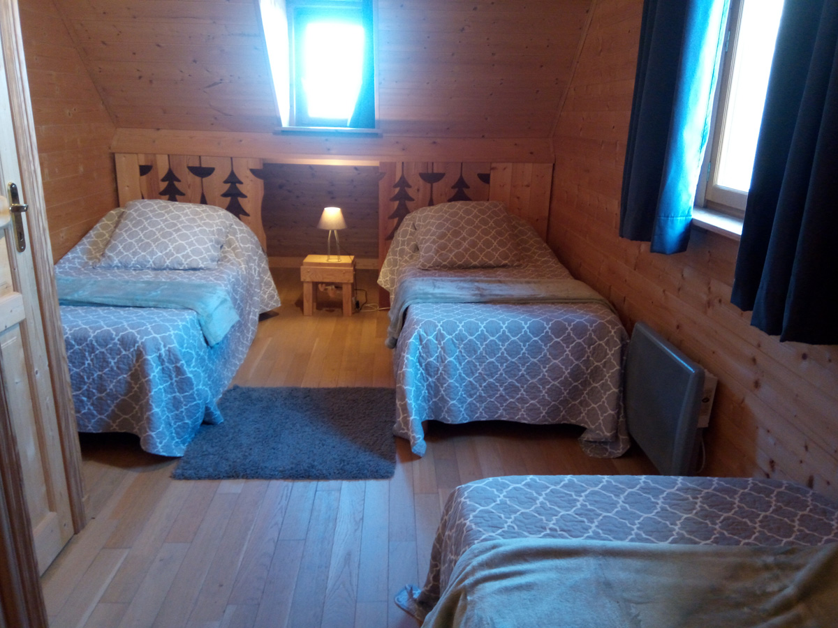 Chalet de 57 m² pour 5 personnes avec une grande pièce principale, 2 chambres, 1 salle de bain et une salle d’eau, 2 WC dont 1 séparé. Electroménager au complet y compris sèche-linge, congélateur, téléphone, internet. Terrasse privée, balcon, parking, local à skis.