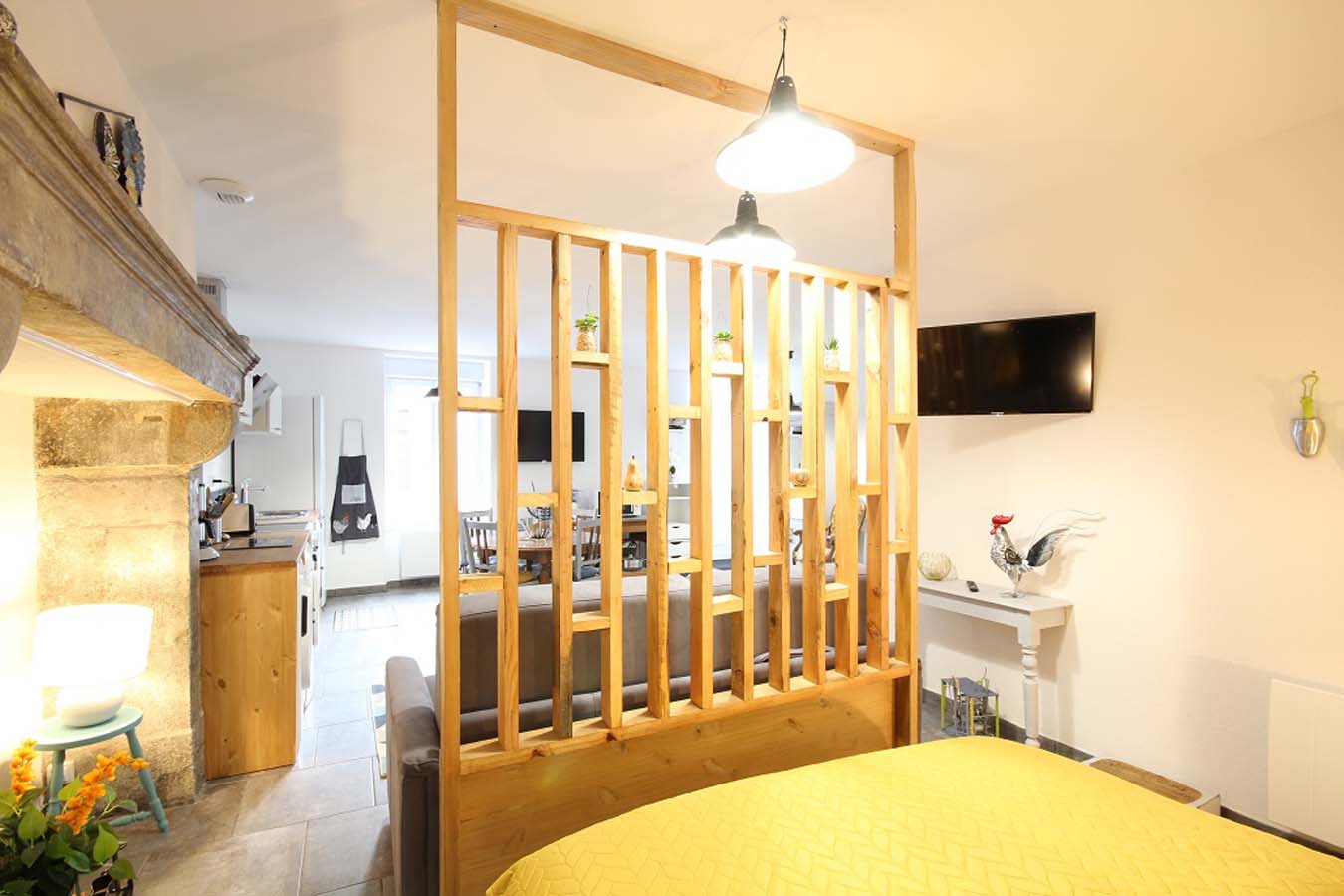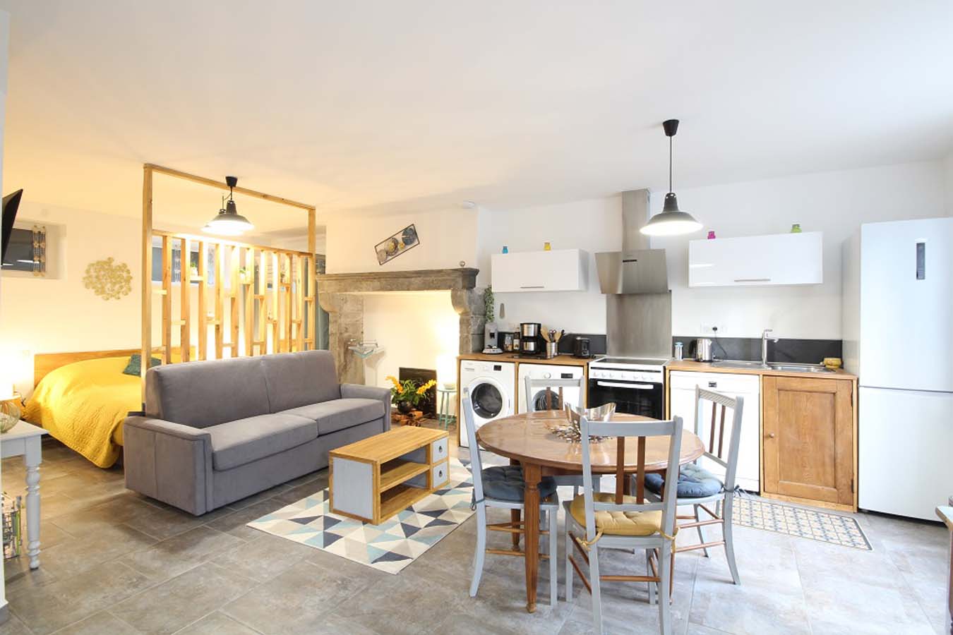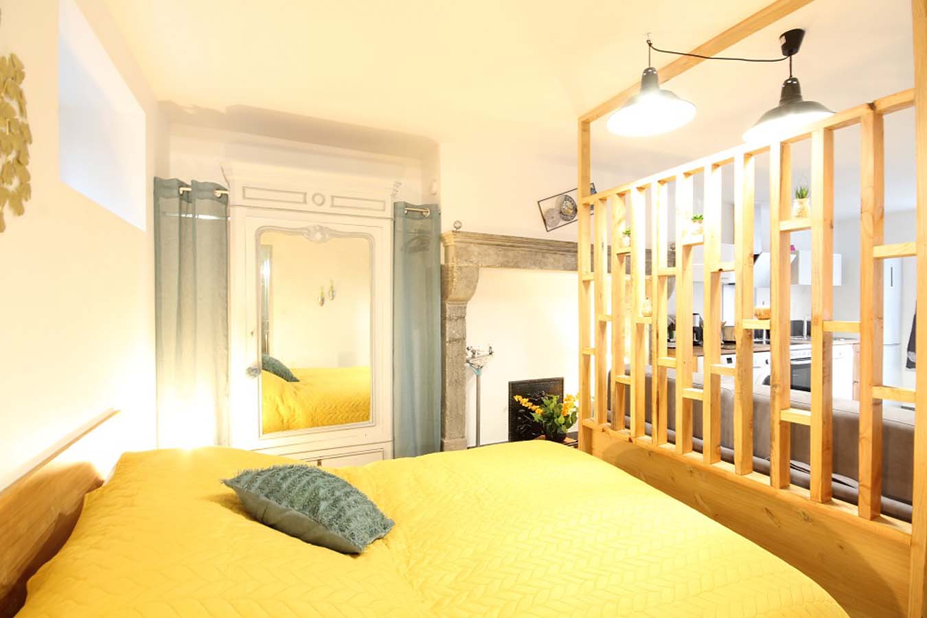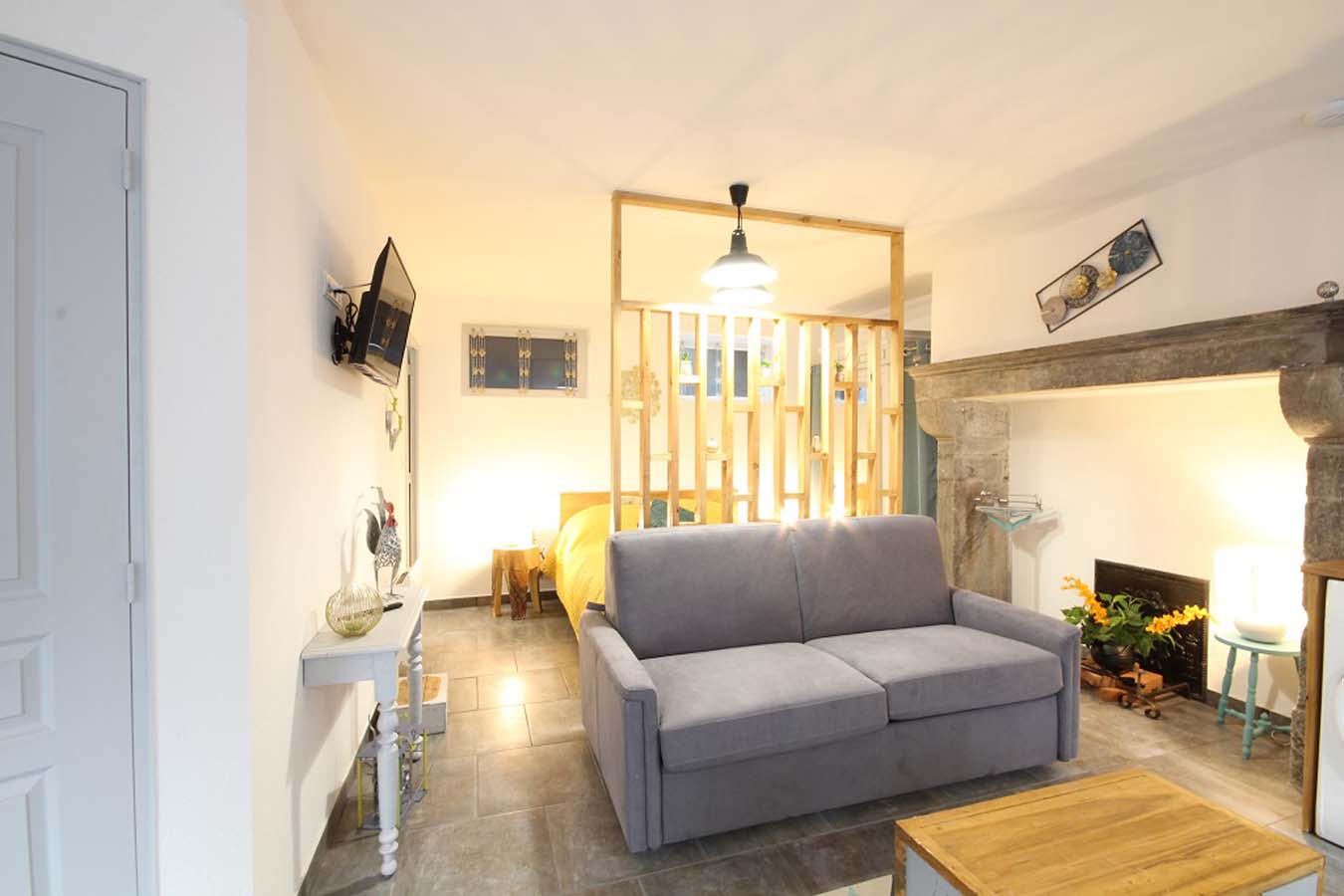 Il se compose d’une pièce à vivre spacieuse et agréable à l’esprit déco : un coin cuisine super équipé, un coin salon confortable et spacieux avec un canapé lit grand confort (2 personnes supplémentaires acceptées au tarif de 40€/pers/sem), d’un coin nuit avec un lit 140 et d’une salle d’eau-WC.(…)