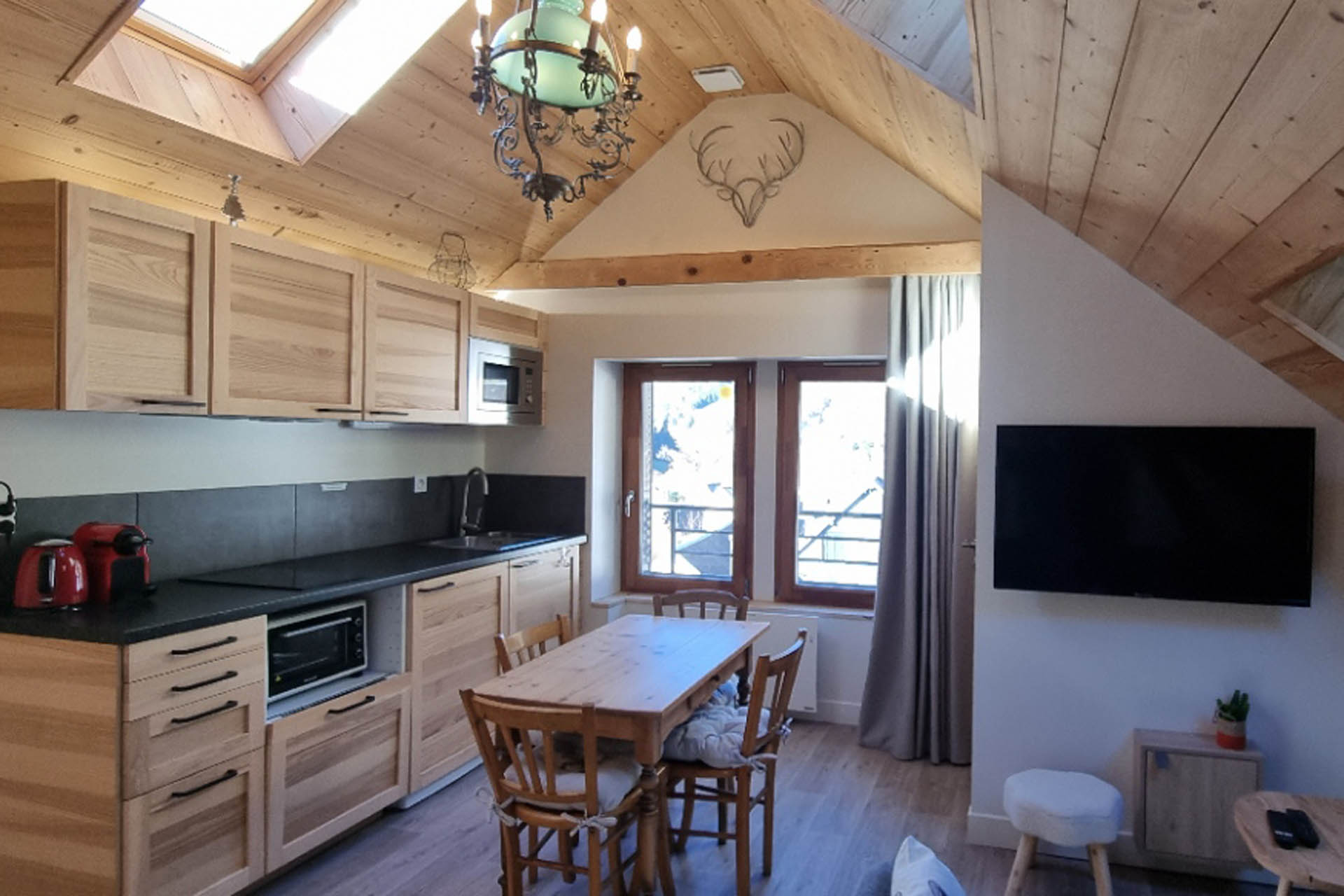 Il se compose d’une pièce à vivre avec coin salon (TV avec Free), espace repas, cuisine aménagée et(…)