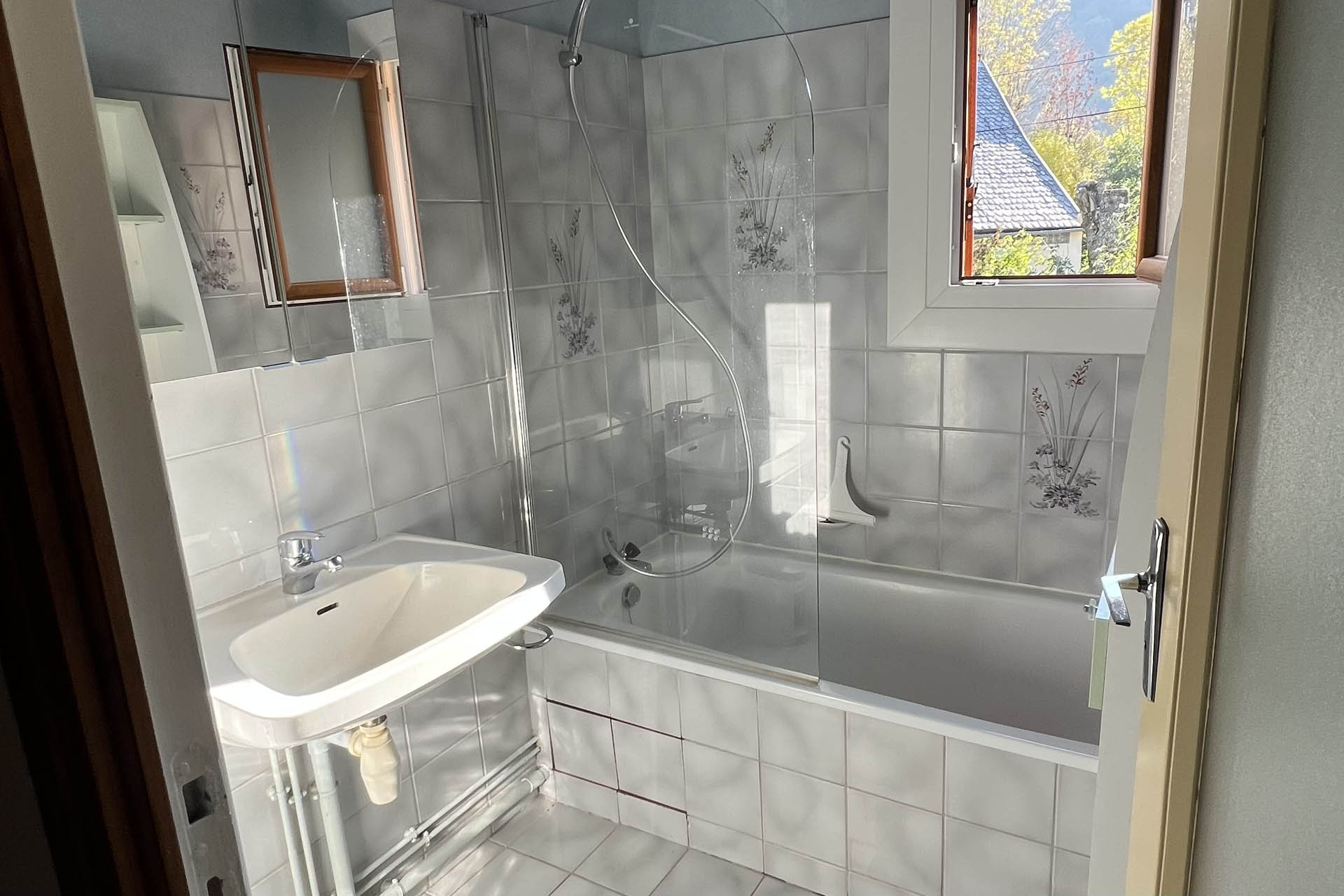 Etage : 2 chambres ( 2 lits en 140cm, 1 lit en 90 cm) – Salle de bain.