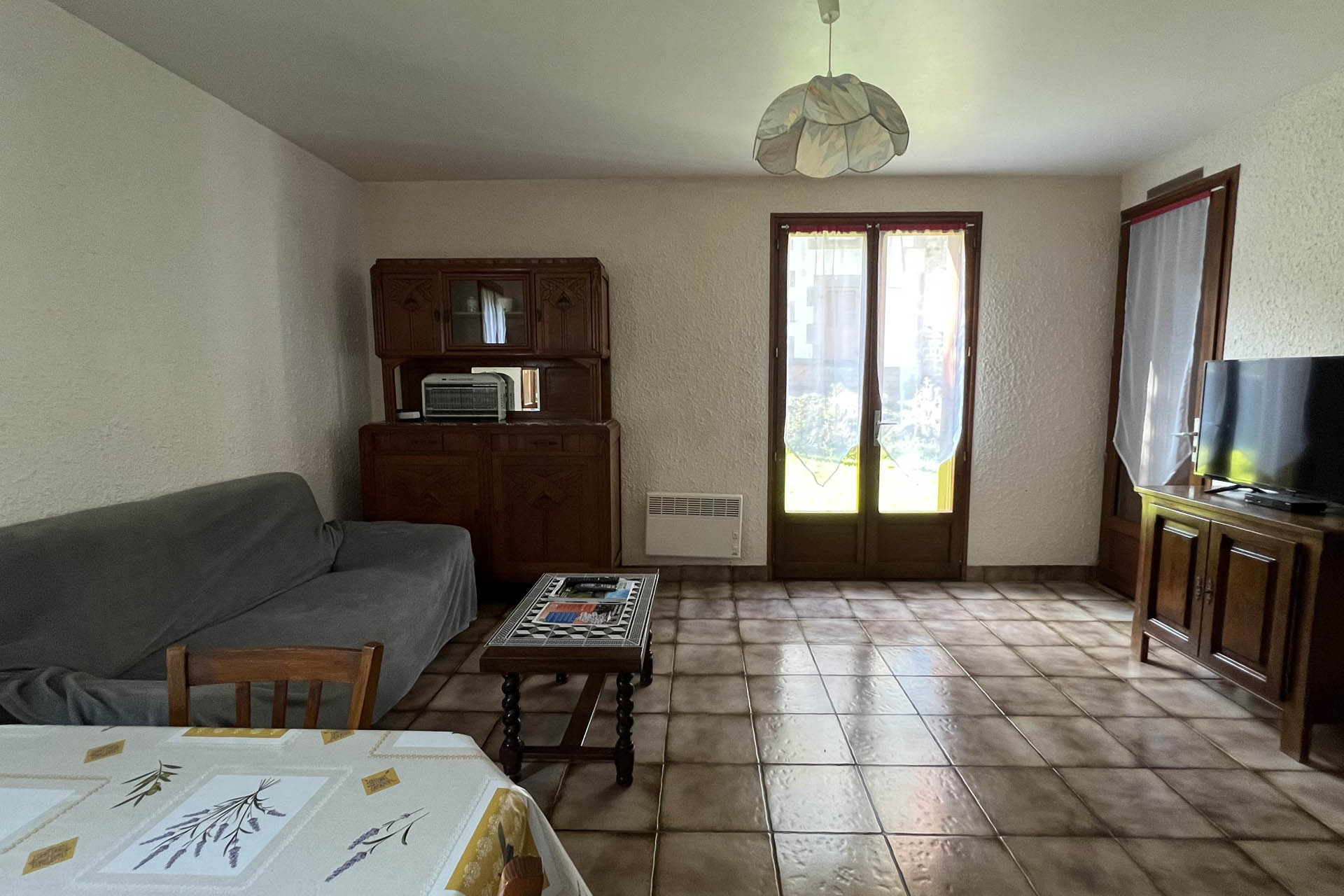 Rez-de-chaussée : Toilettes dans l’entrée, puis partie cuisine et partie salon canapé, Tv. Wifi.