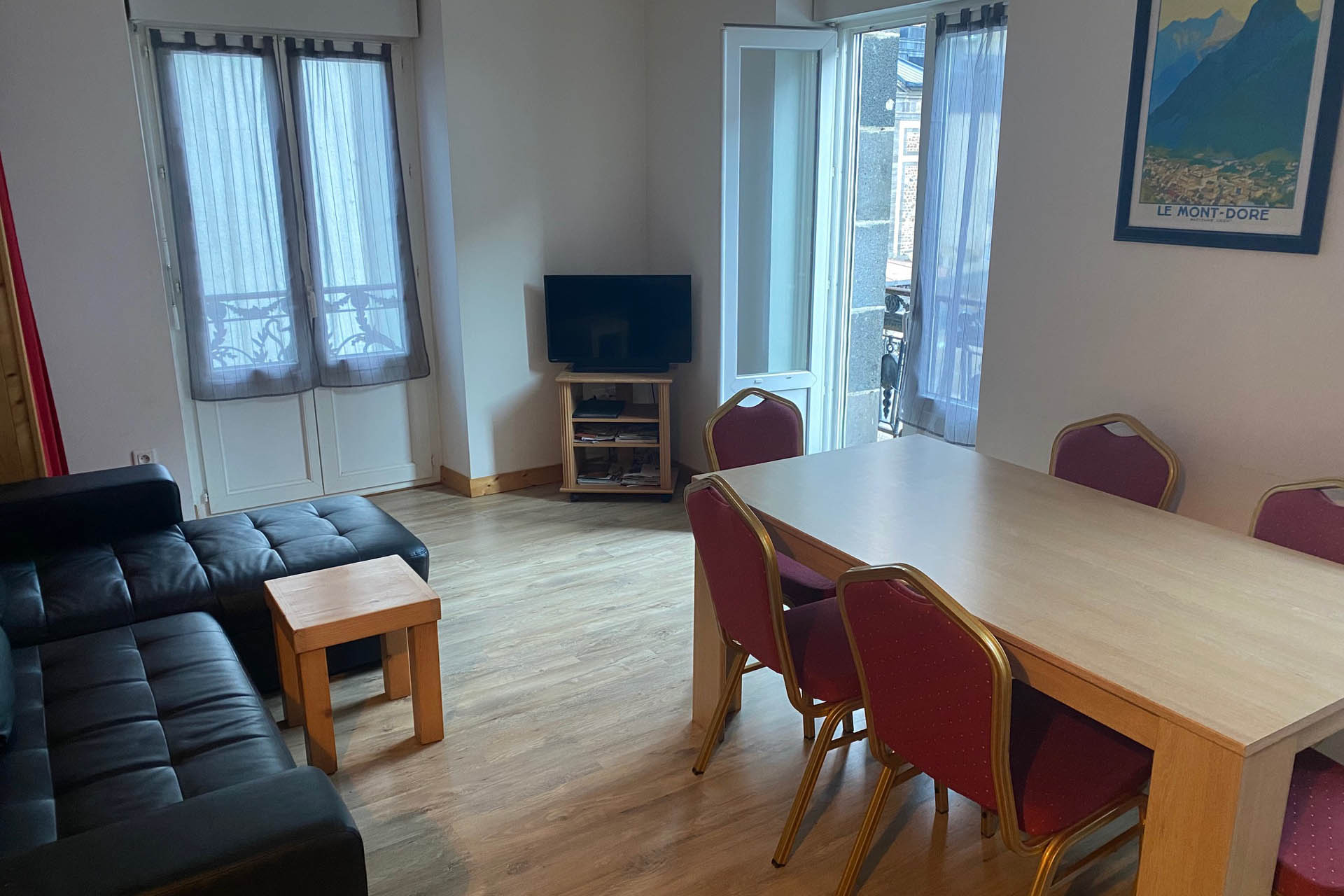 appartement pour 6 personnes de 50 m2 cuisine séjour avec 2 chambres ,1 chambre avec un lit de 140 et une chambre avec 2 lits de 90 ,cuisine sejour avec un canapé convertible dans séjour ,un balcon sur 2 face de l appartement, situé en face de l etablissement thermale au 1 er étage avec ascenseur,
