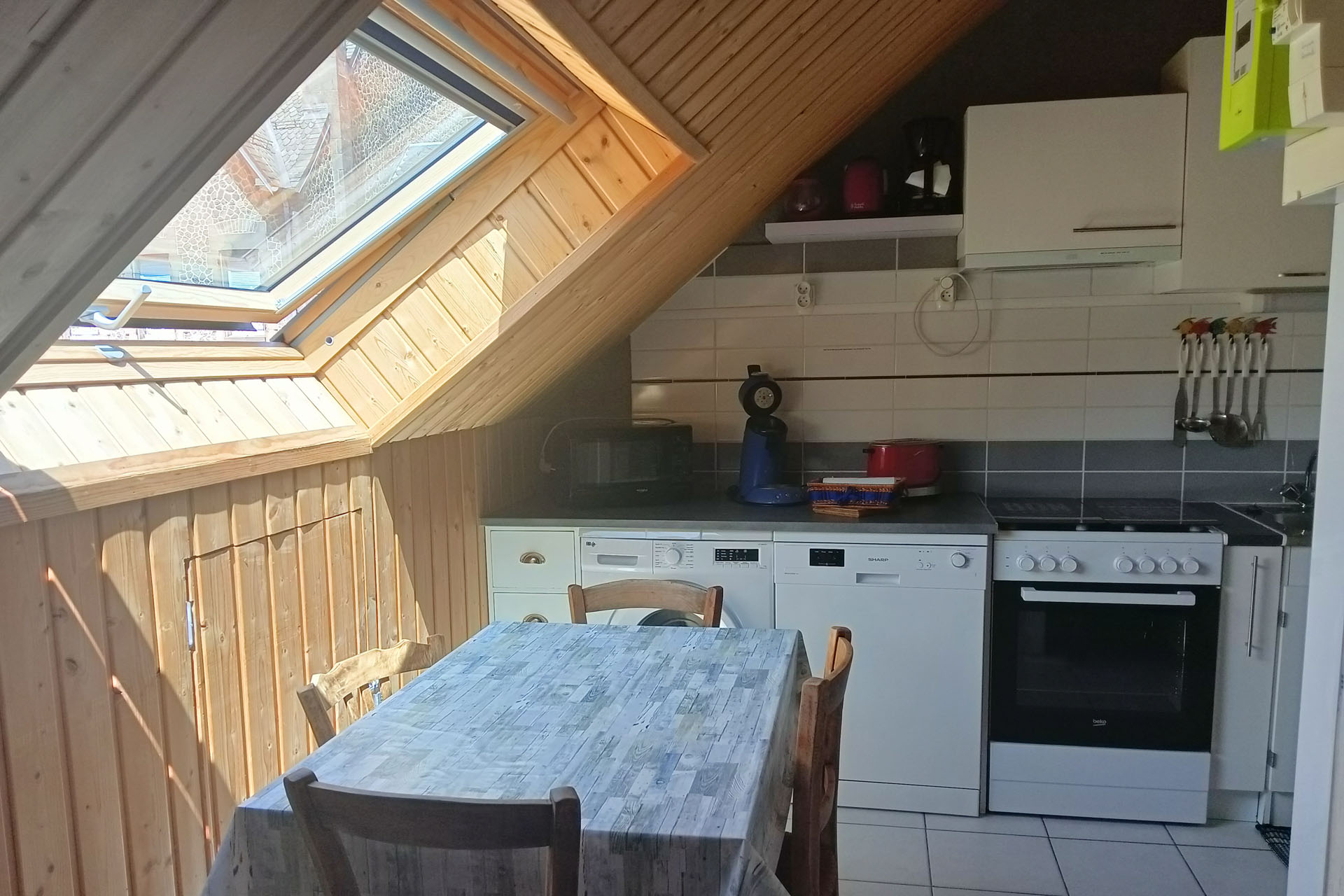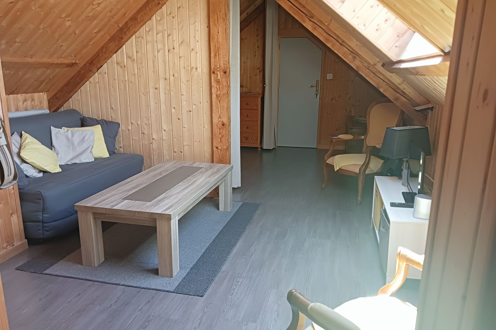 Très agréable par sa situation géographique (centre ville, rue calme, face aux thermes et navettes) que par son côté cocooning (aspect intérieur chalet), 1 chambre fermée avec 1 lit de 140 cm + 1 lit de 90 cm, 1 coin nuit (fermeture rideaux) 2 lits de 90 cm lits tiroirs qui se mettent au même niveau, Salon, (BZ, télé, chaîne hifi). Cuisine toute équipée, salle de bain (douche, sèche serviettes et WC).