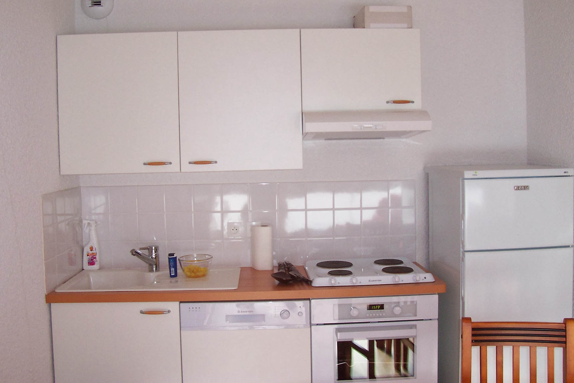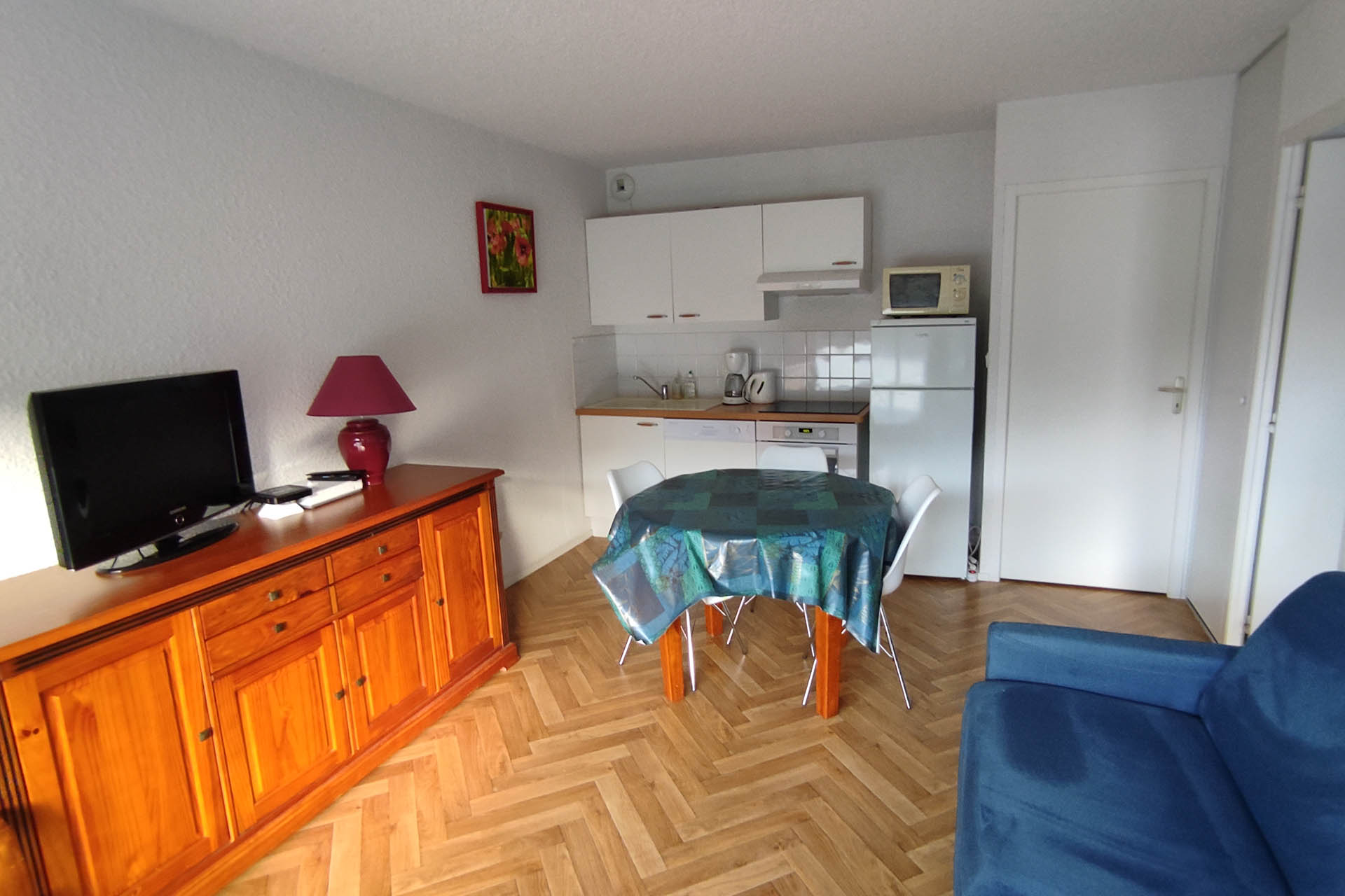 Il se compose d’une entrée avec dégagement (armoire penderie avec miroirs), une chambre avec lit 140×190, un chiffonnier et un chevet, une salle d’eau avec douche lavabo et lave-linge (chauffe eau(…)