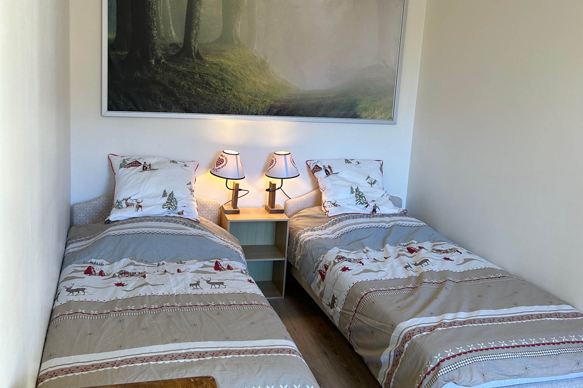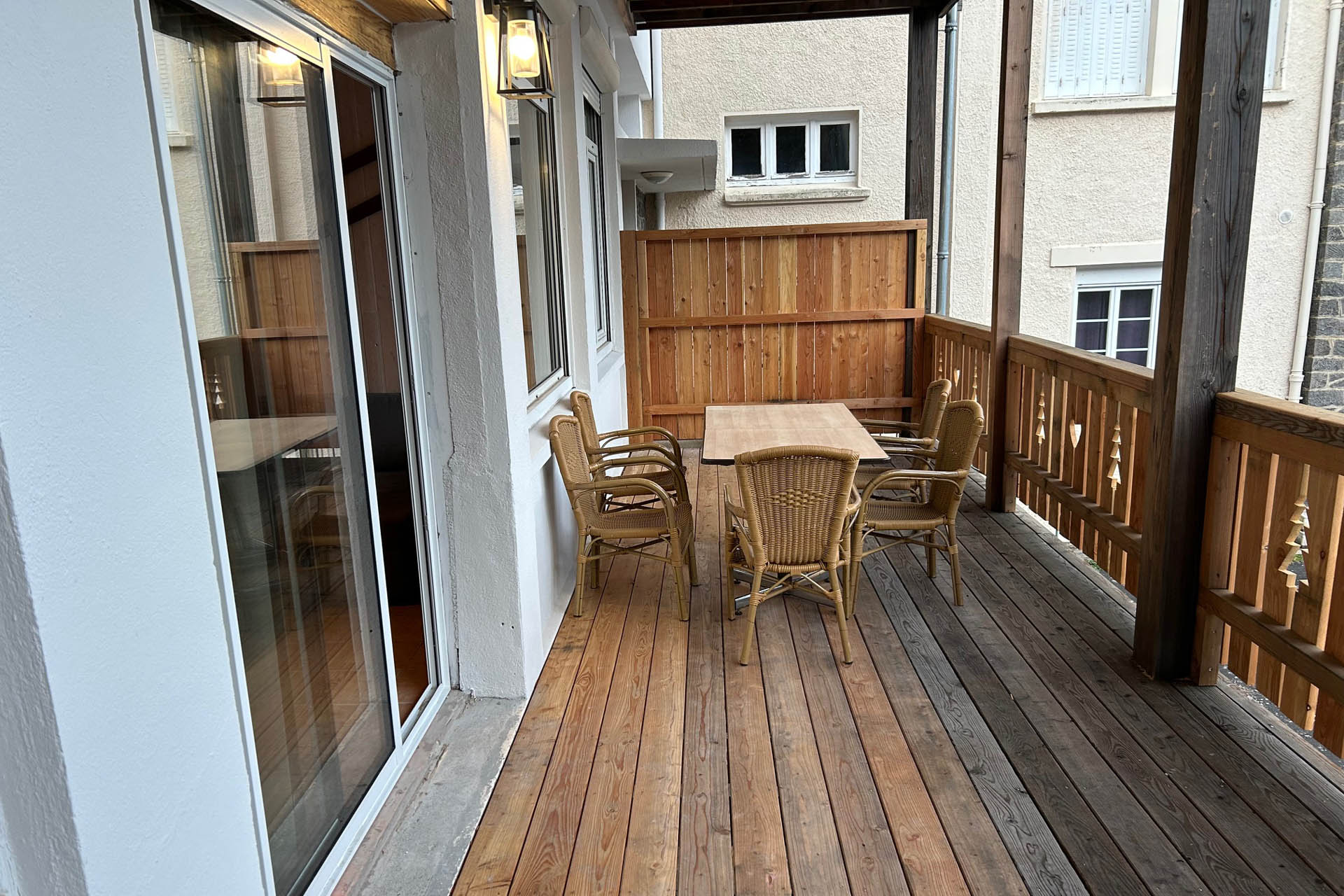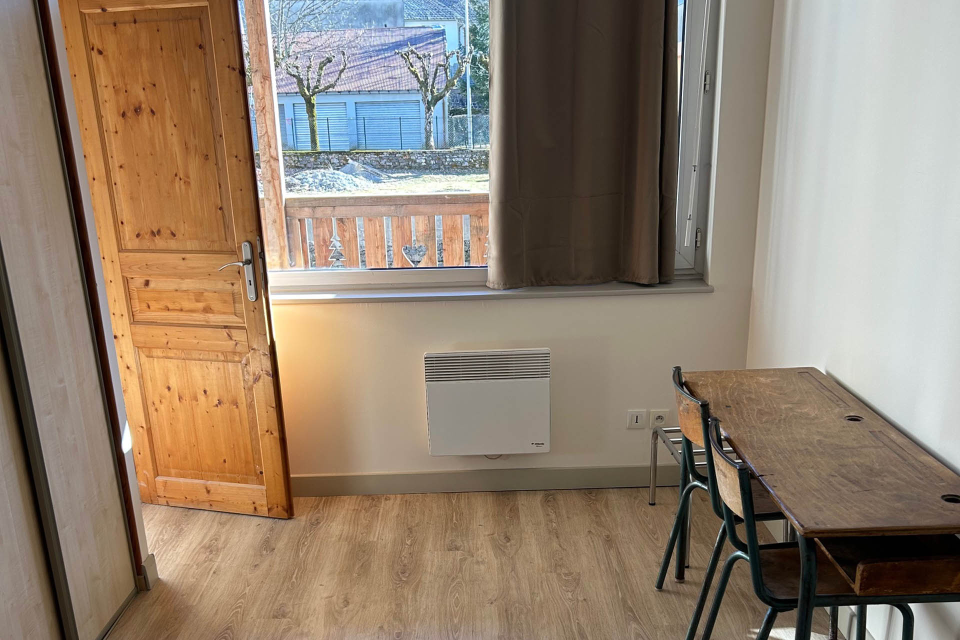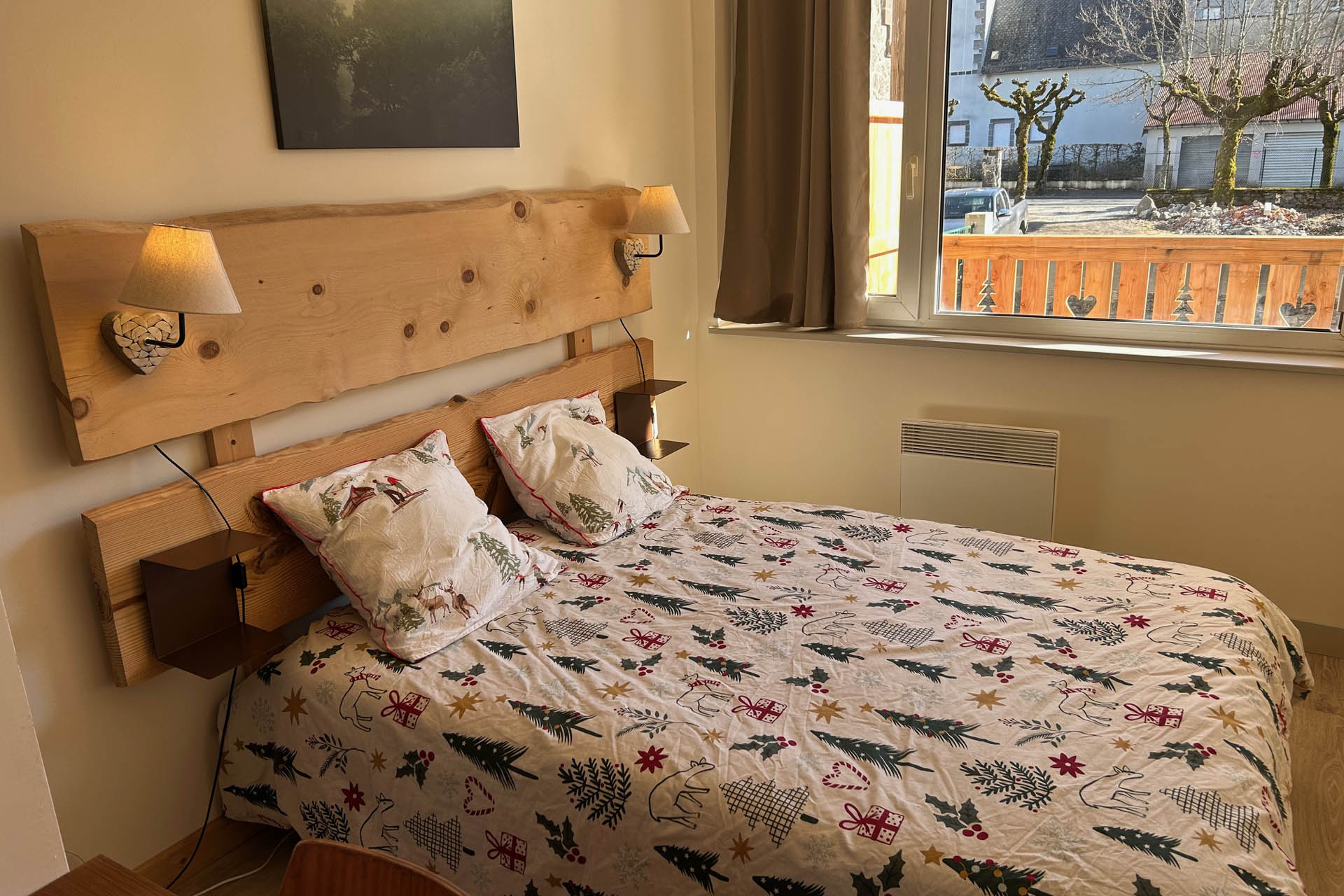 Résidence Les Chamois, Marmotte n°3 est un F3 au calme, très clair, avec 1 place de parking privative, une grande terrasse de 20m² avec table et chaises, plancha et vue dégagée sur le village et les montagnes, grande cour commune fermée pour les enfants