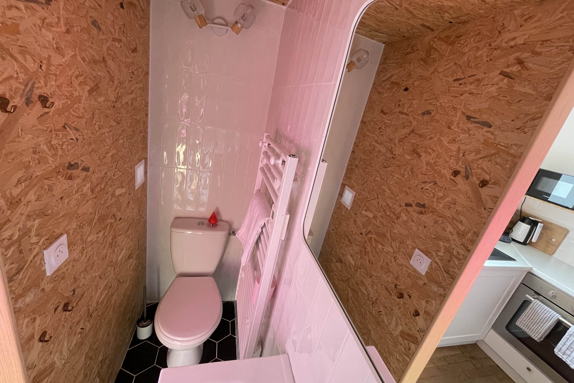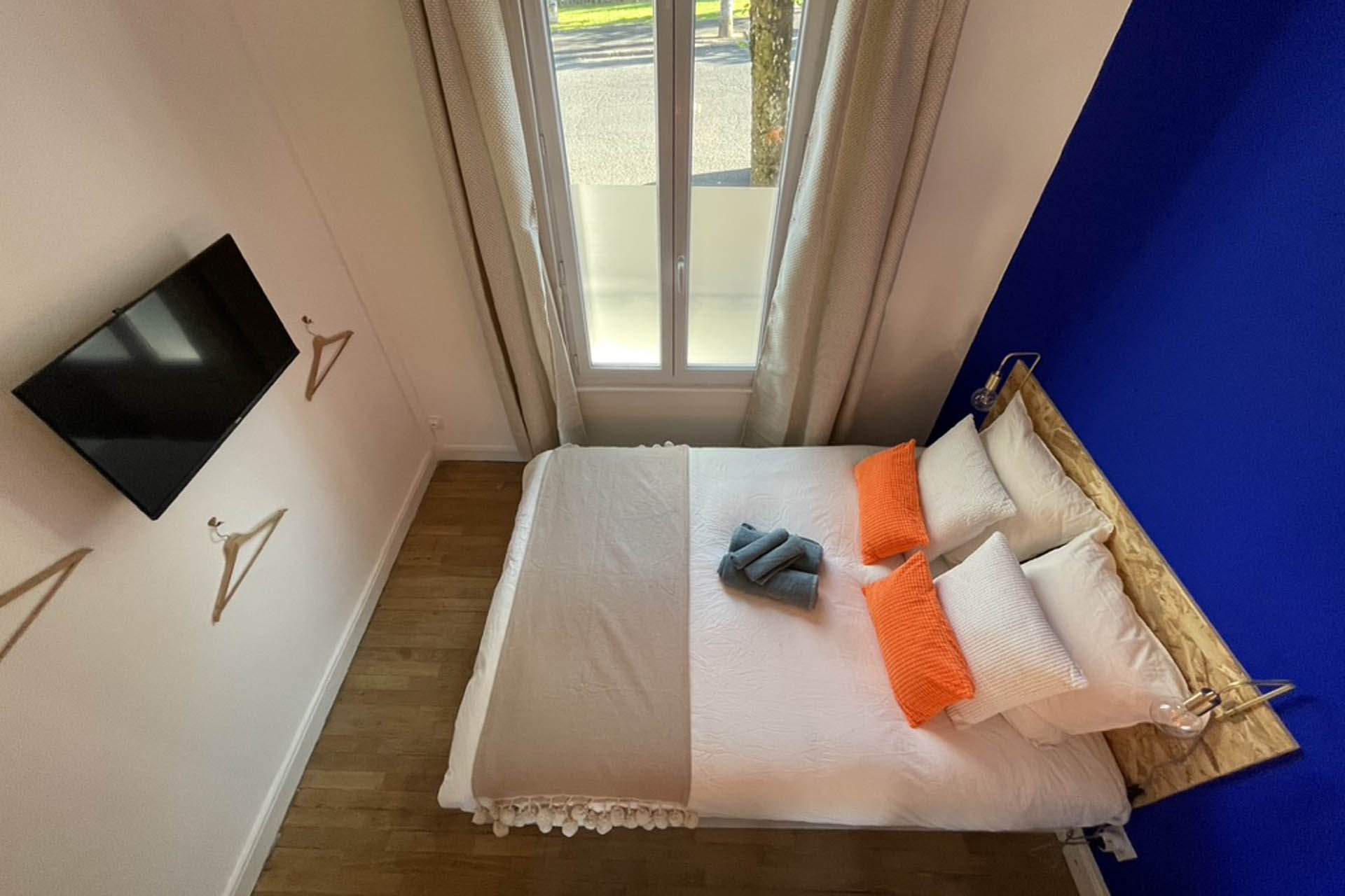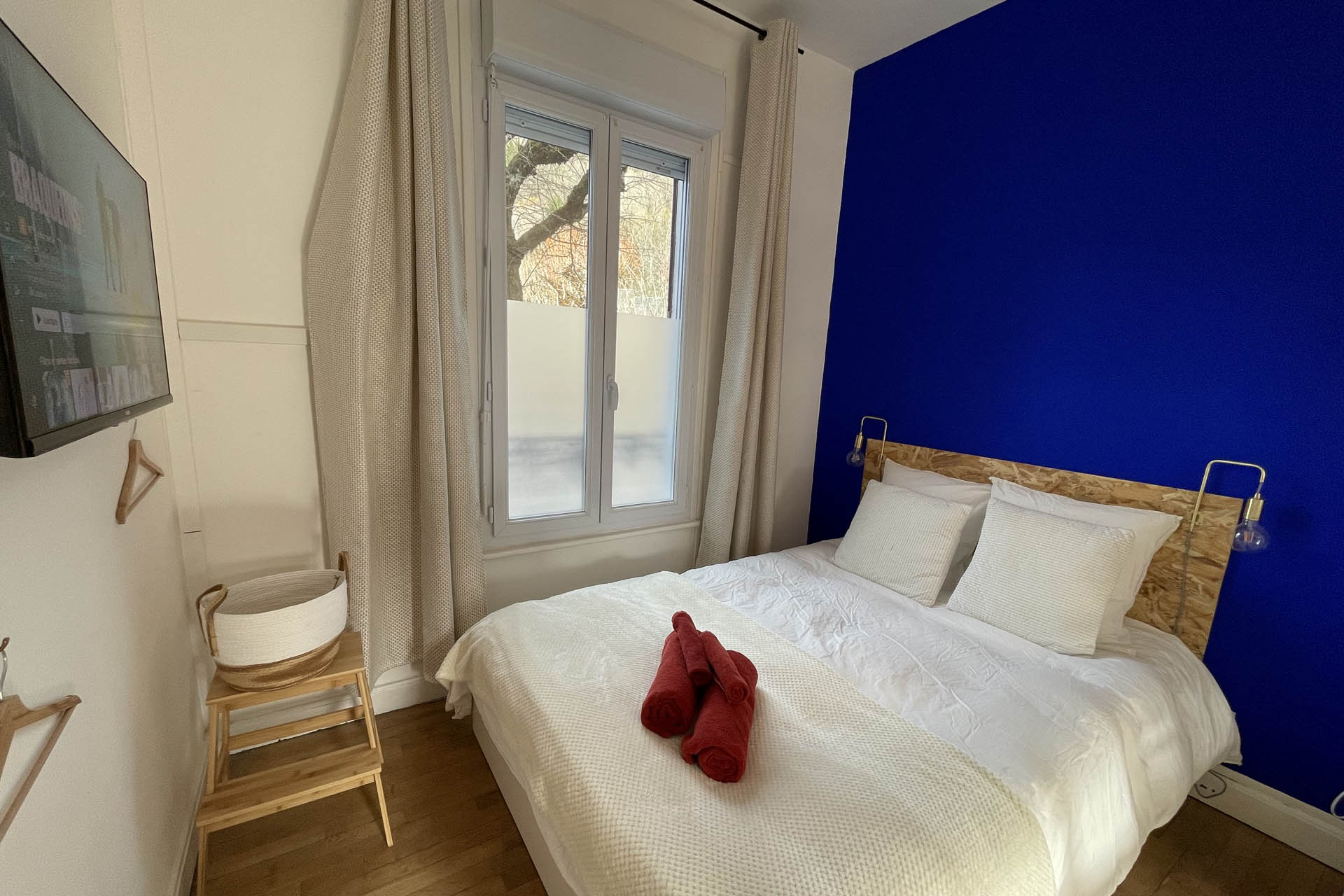 ️Coin chambre : Lit double 140×200 cm prêt à l’arrivée (draps fournis), ambiance cosy et minimaliste.