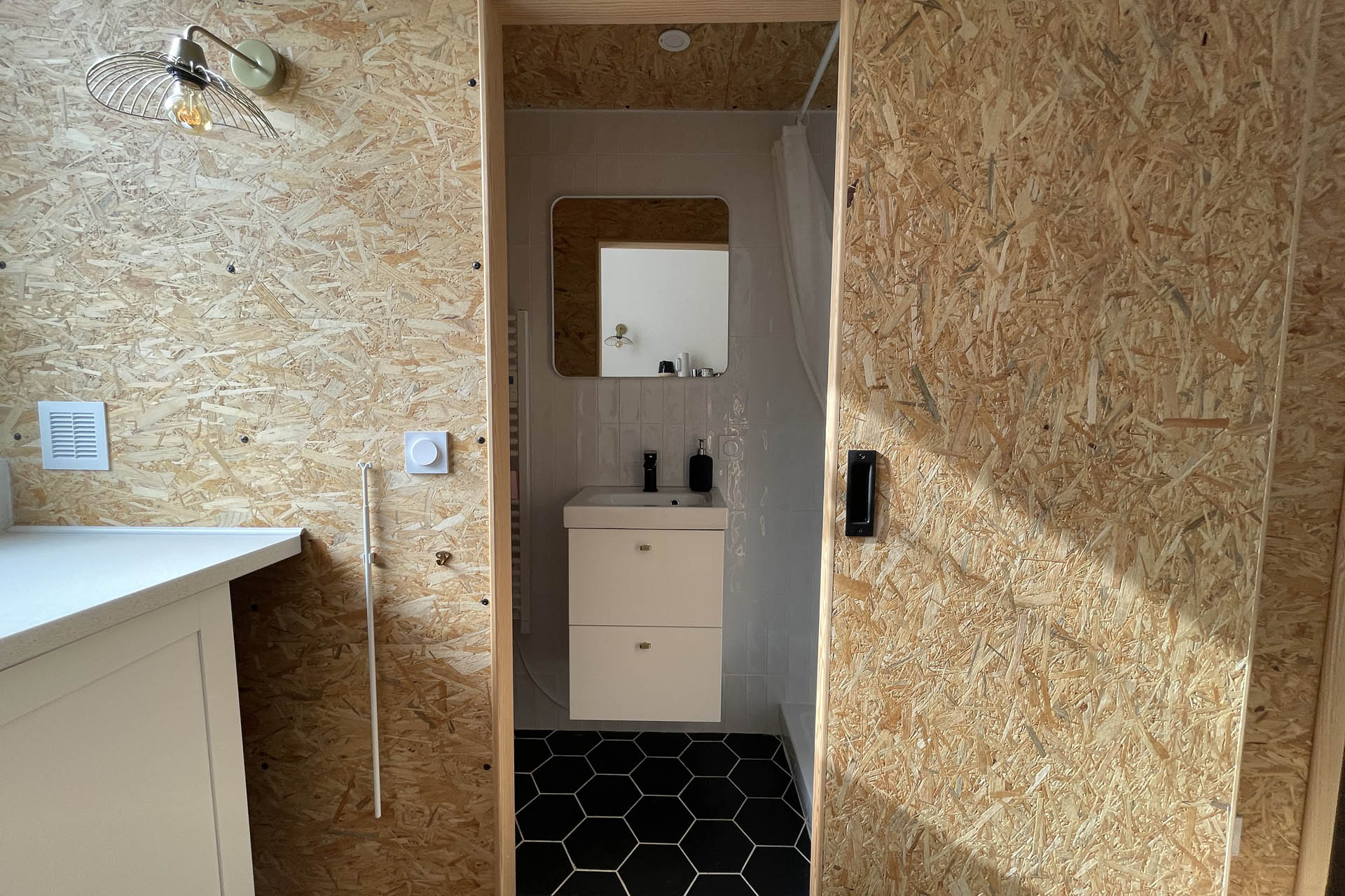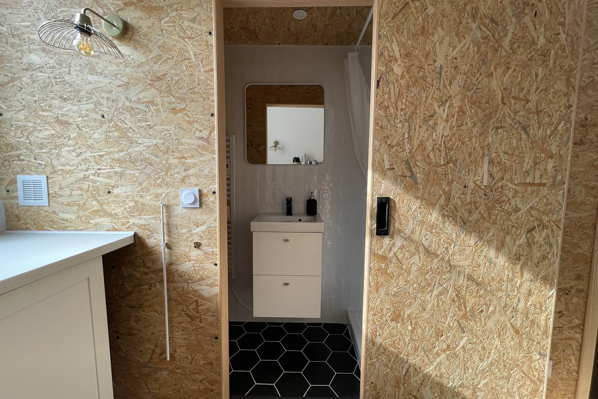 Salle de bain : Draps de bain à disposition, sèche-cheveux, savon, shampoing et sèche-serviettes pour vos moments de détente.