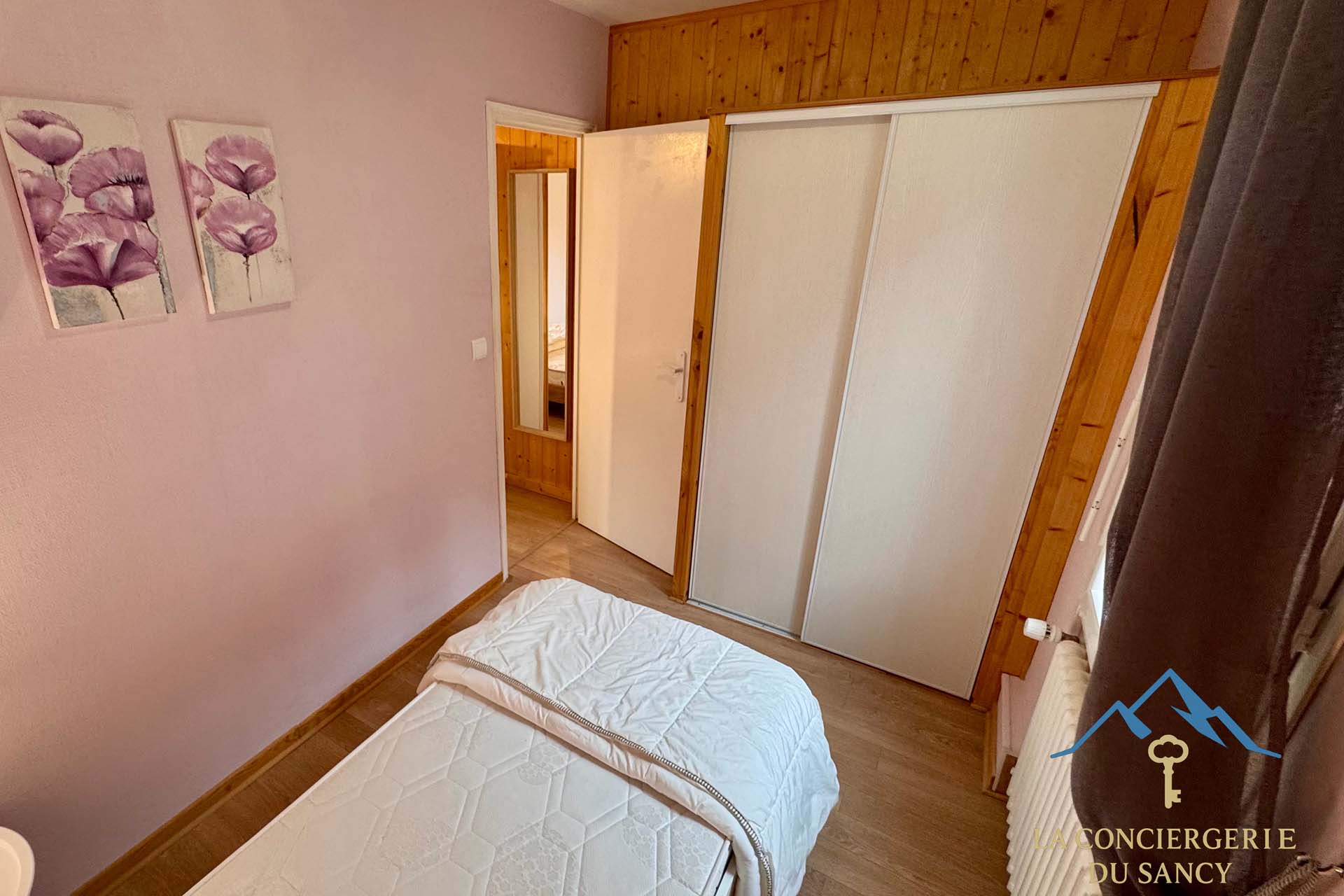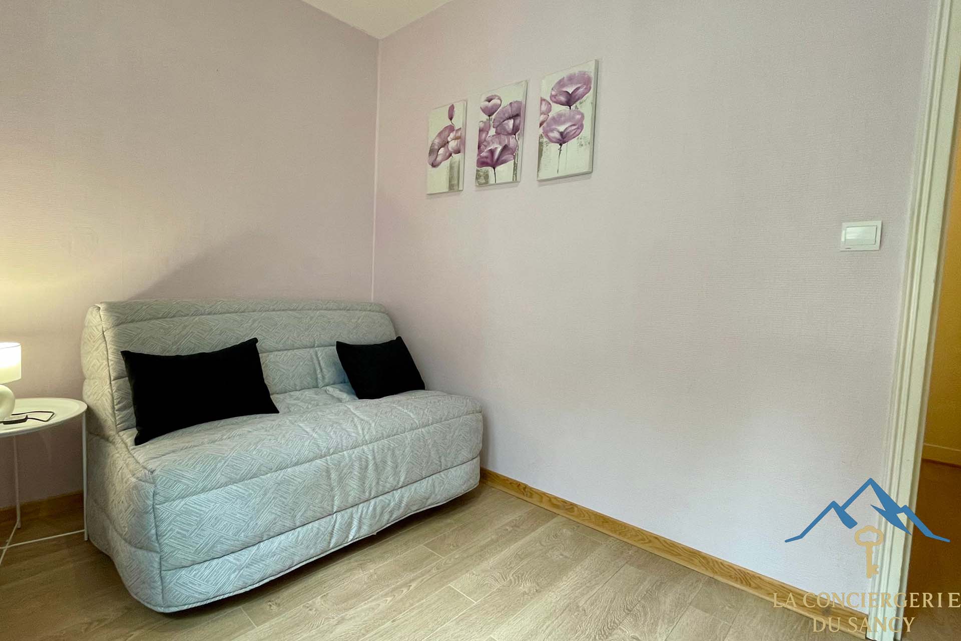 Il se compose d’un séjour-cuisine ouverte dans une ambiance chaleureuse et agréable, d’une chambre avec lit de 160, d’une chambre en enfilade avec un lit de 90 et d’une salle d’eau / WC.