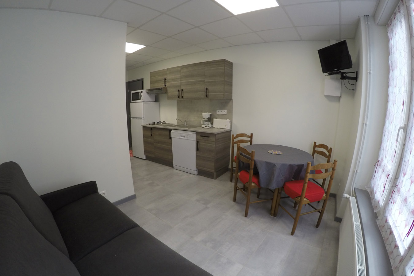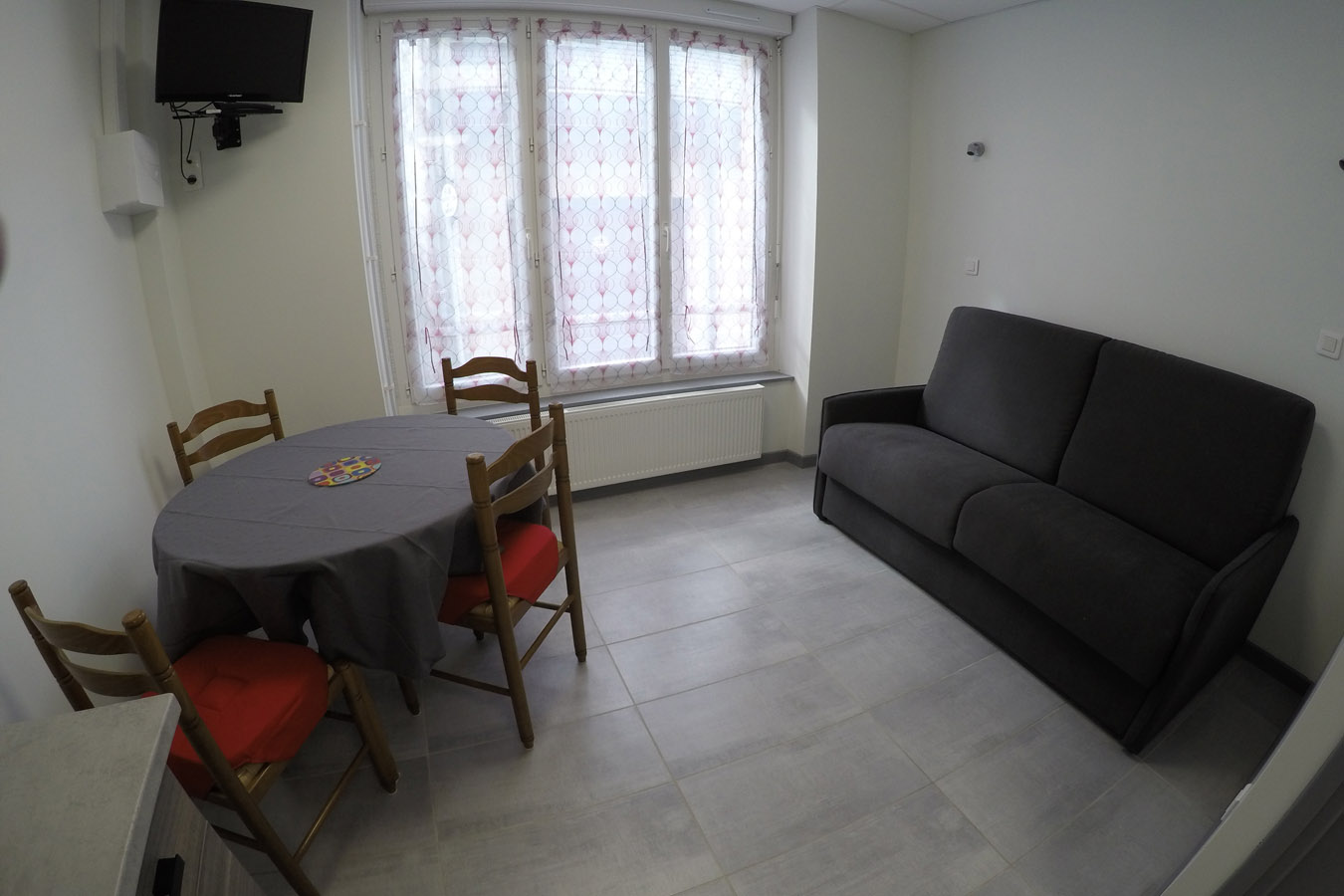 – d’un séjour avec 1 canapé rapido pour 2 personnes (vrai lit)