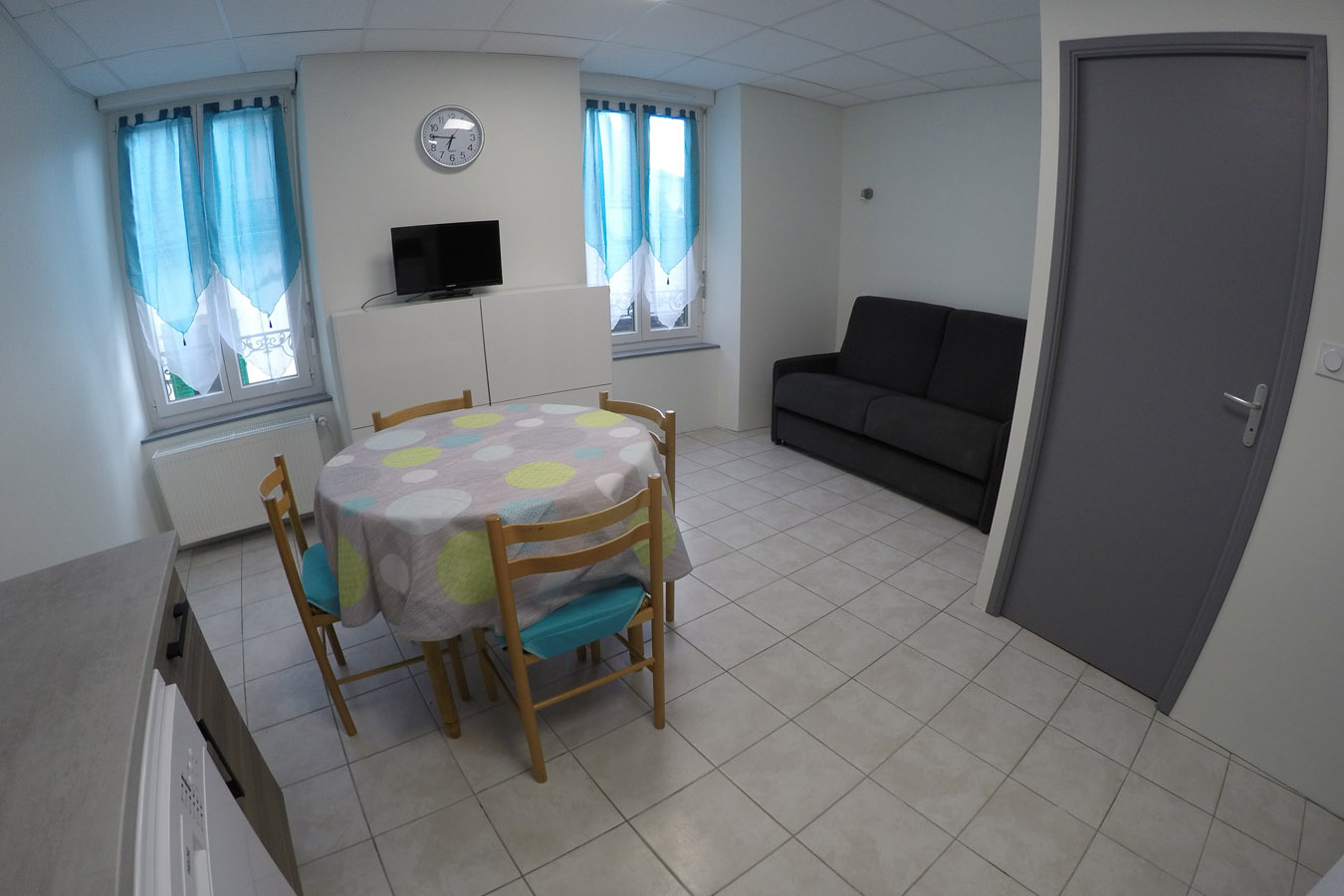 – d’un séjour avec canapé rapido pour 2 personnes (vrai lit)