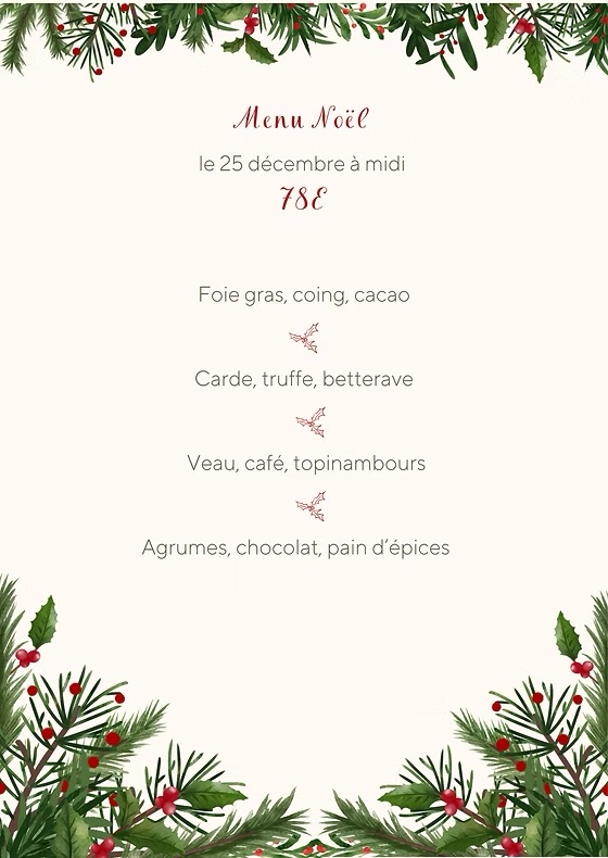 Vous pouvez retrouver nos menus de fêtes de fin d’année 2025 dans l’onglet Documentation
